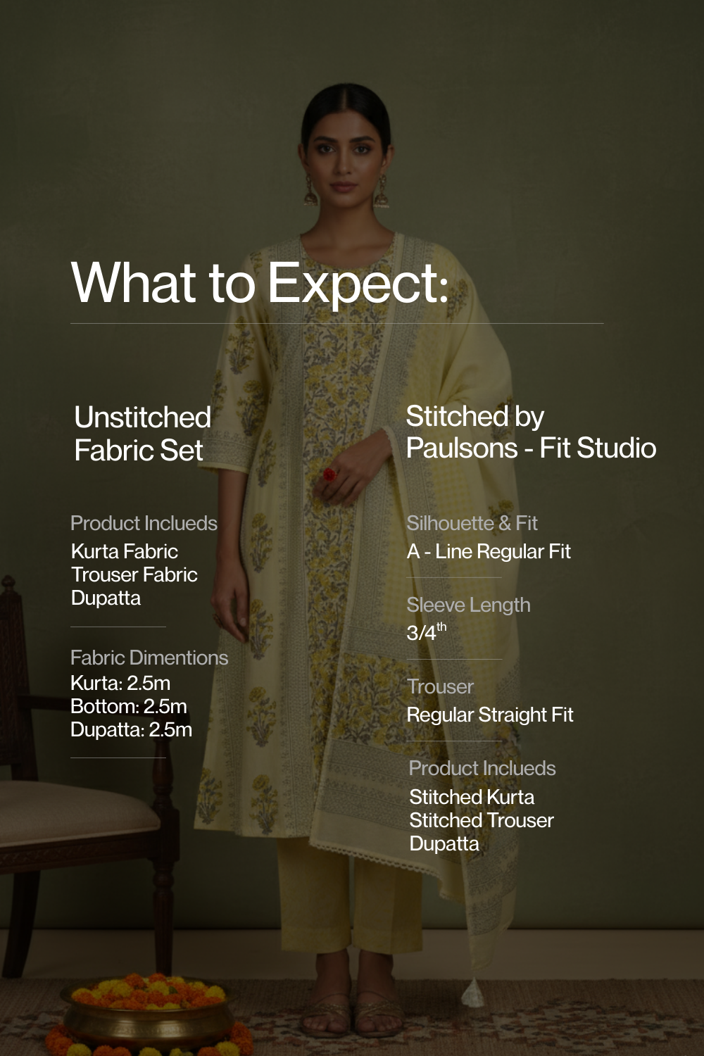 Please note: For the stitched kurta set, the MRP is inclusive of a ₹2,500 stitching charge.