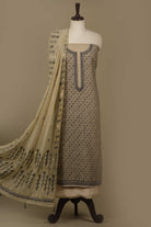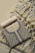 Beige With Gray Chanderi Embroidered Unstitched Suit Fabric Set With Chanderi Embroidered Woven Dupatta
