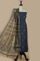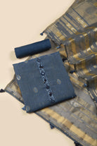 Blue Chanderi Woven With Embroidered Unstitched Suit Fabric Set With Chanderi Woven Dupatta