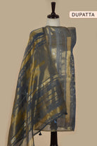 - This Blue Chanderi unstitched suit fabric set combines elegant woven craftsmanship with intricate Kantha embroidery, complemented by a matching Chanderi woven dupatta.
