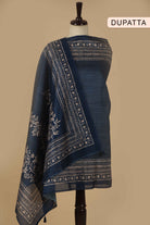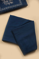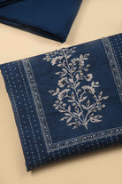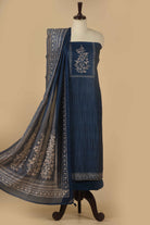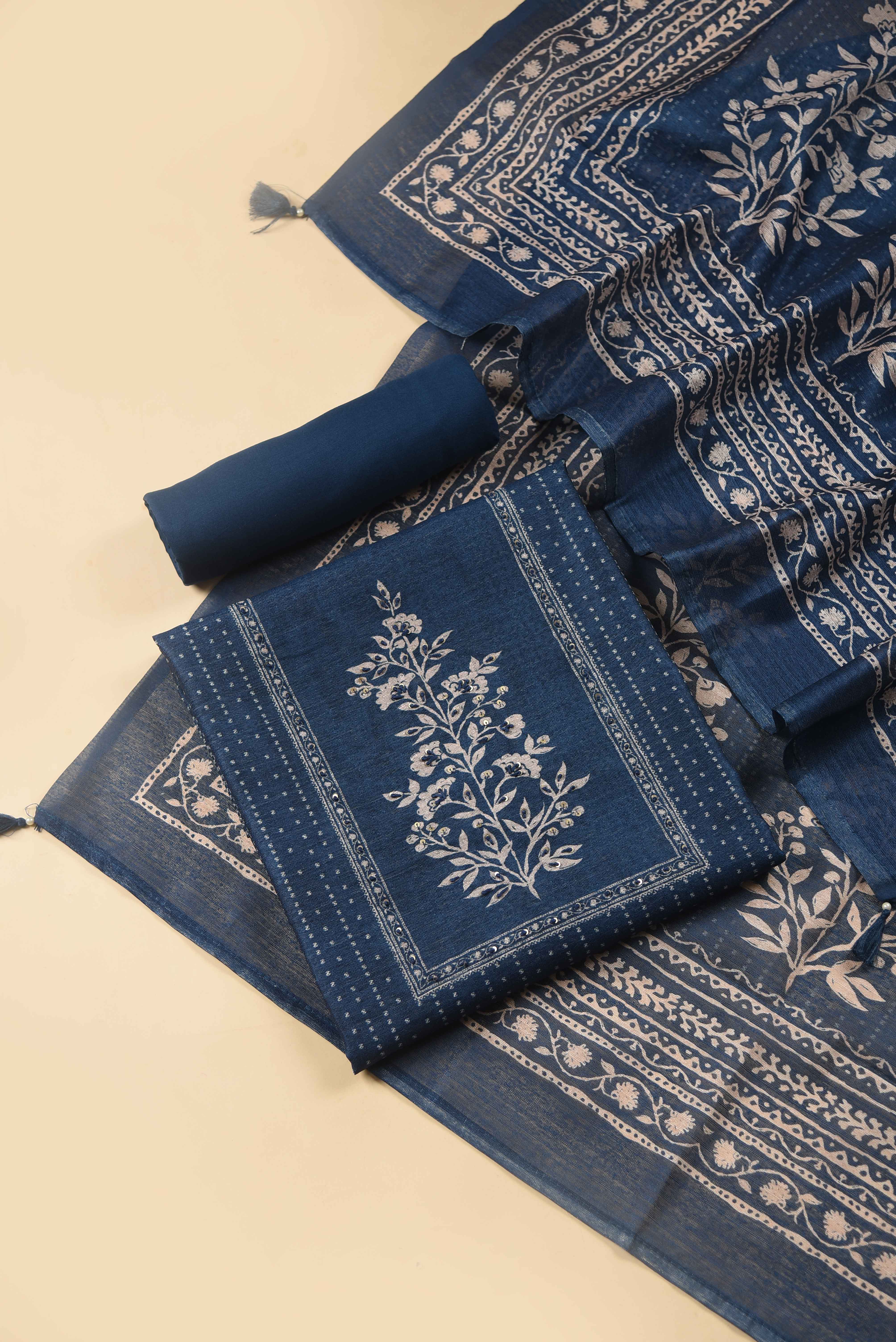 Blue Linen Silk Blend Printed With Embroidered Unstitched Suit Fabric Set With Linen Silk Dupatta