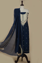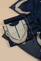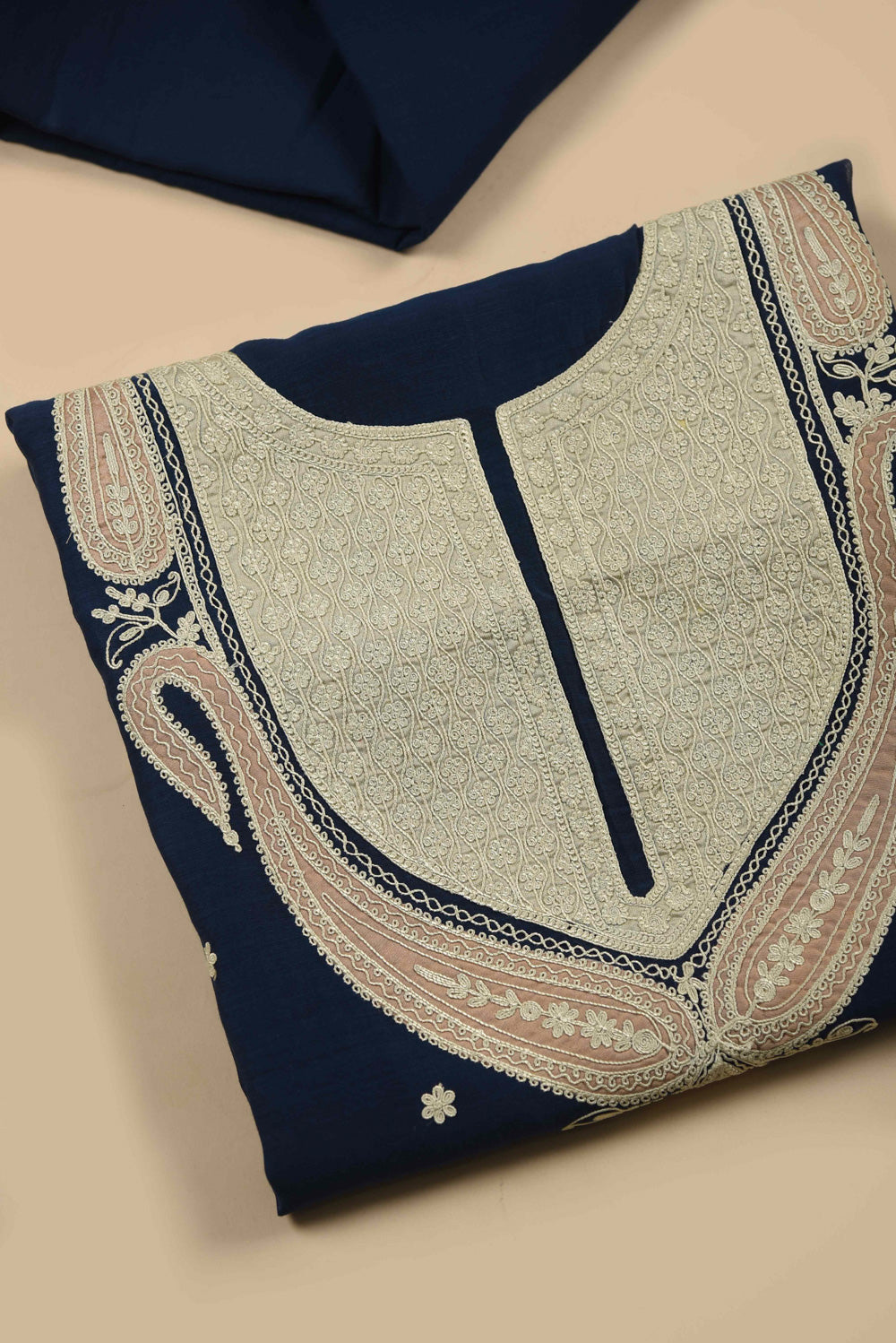 Blue Mul chanderi Embroidered Unstitched Suit Fabric Set With Mul Chanderi Embroidered Dupatta