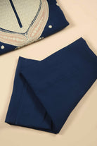 - Elevate your festive wardrobe with this exquisite Blue Mul Chanderi unstitched suit fabric set.