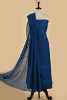 - Add a touch of elegance to your wardrobe with this stunning blue unstitched suit set crafted from premium mul Chanderi fabric.