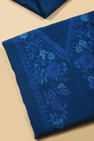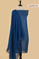 Blue Mul Chanderi Embroidered Unstitched Suit Fabric Set With Mul Chanderi Embroidered Dupatta