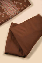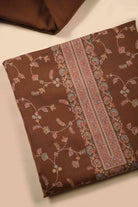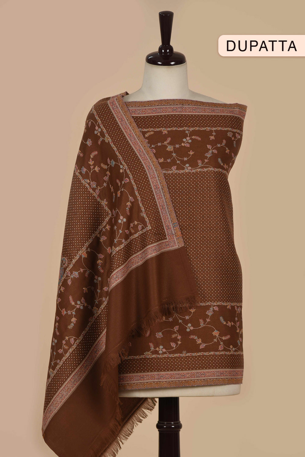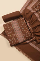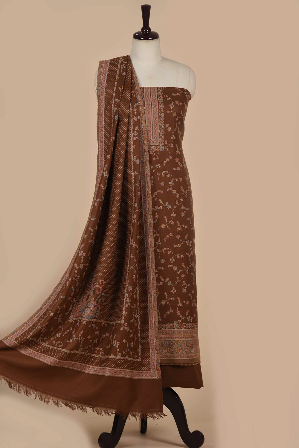 Brown Winter Wear Wool Spun Blend Woven Jamdaani Unstitched Suit Fabric Set With Wool Spun Blend Stole