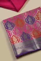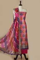 Deep Pink Silk Multicolor Banarasi Woven Unstitched Suit Fabric Set With Organza Woven Dupatta