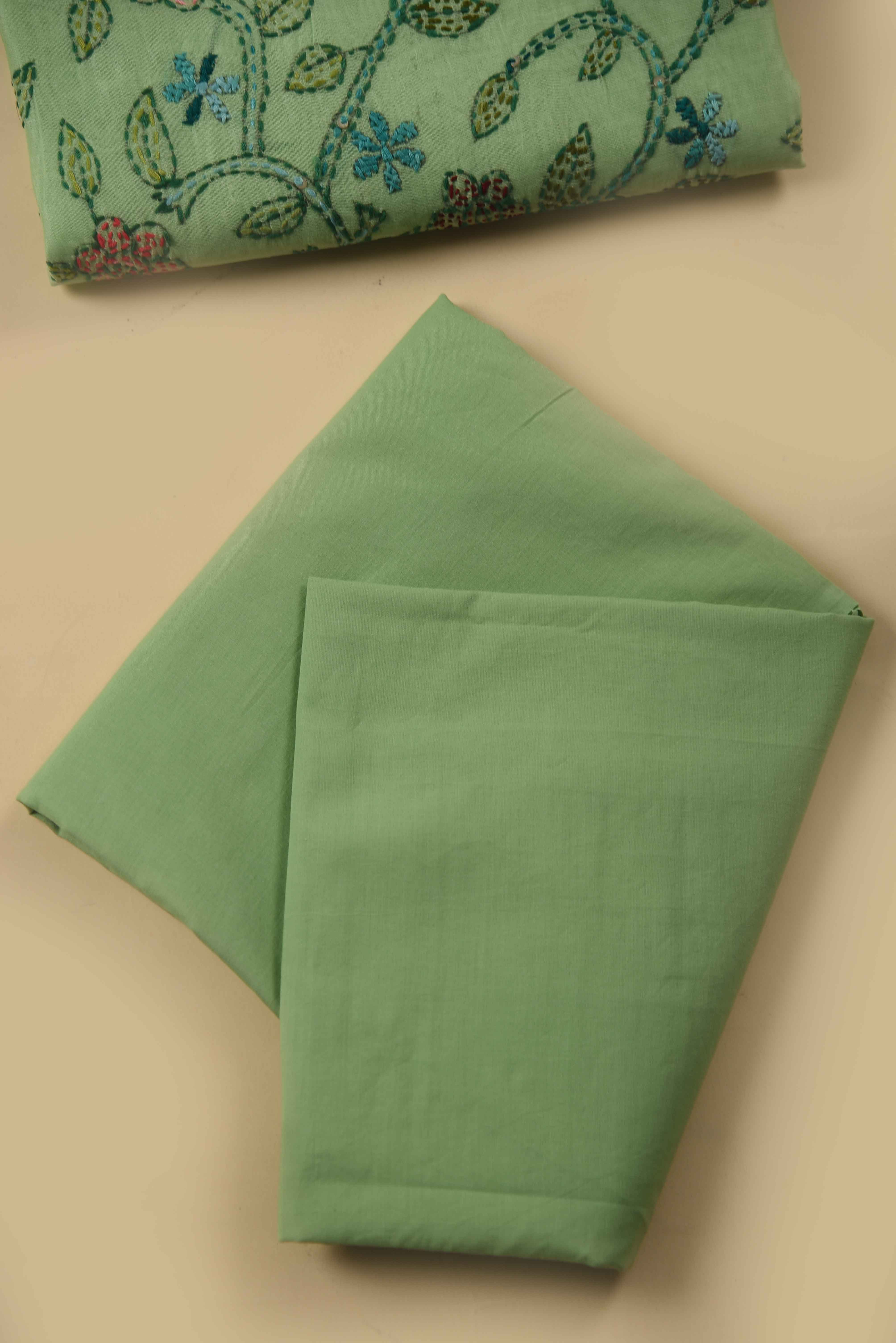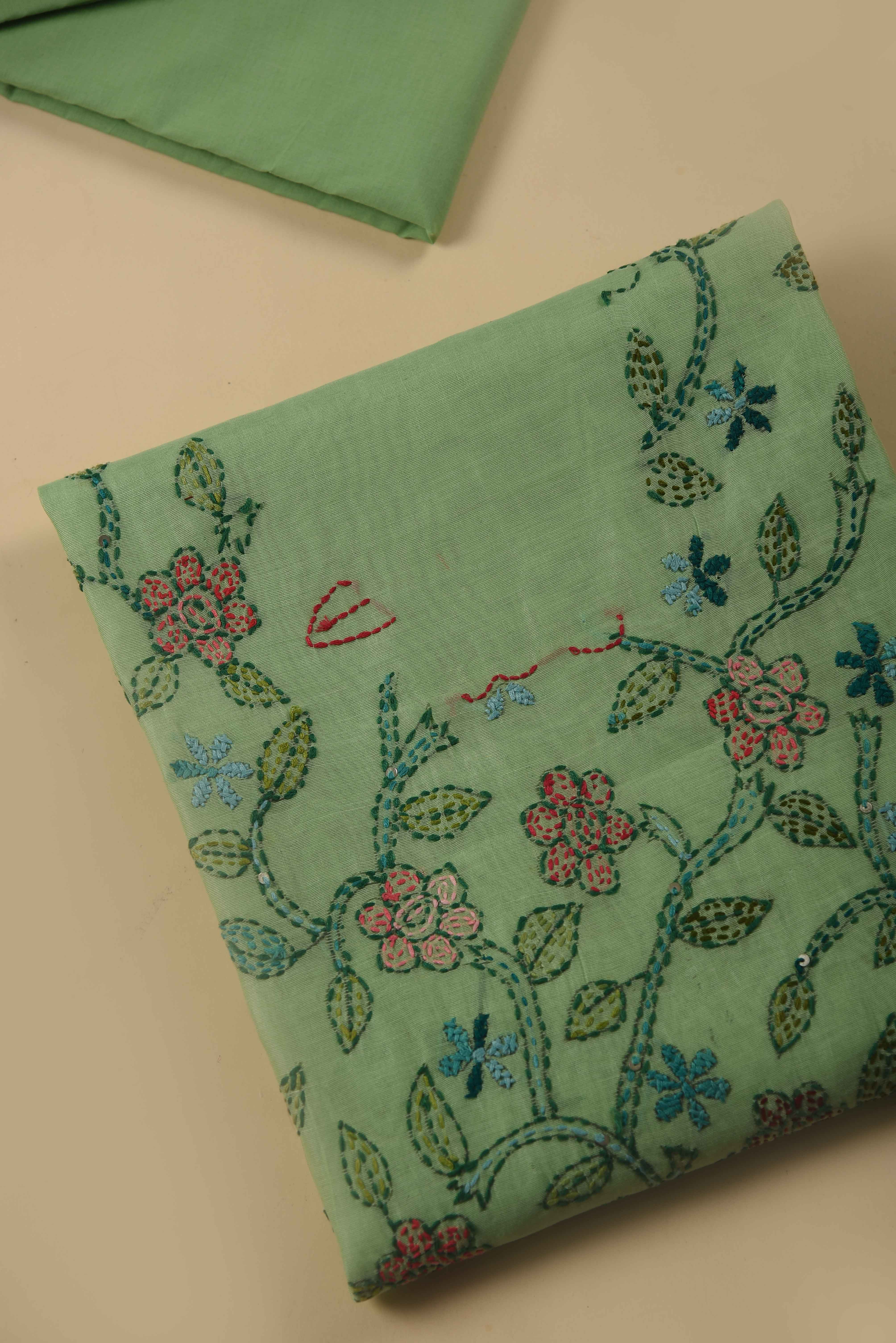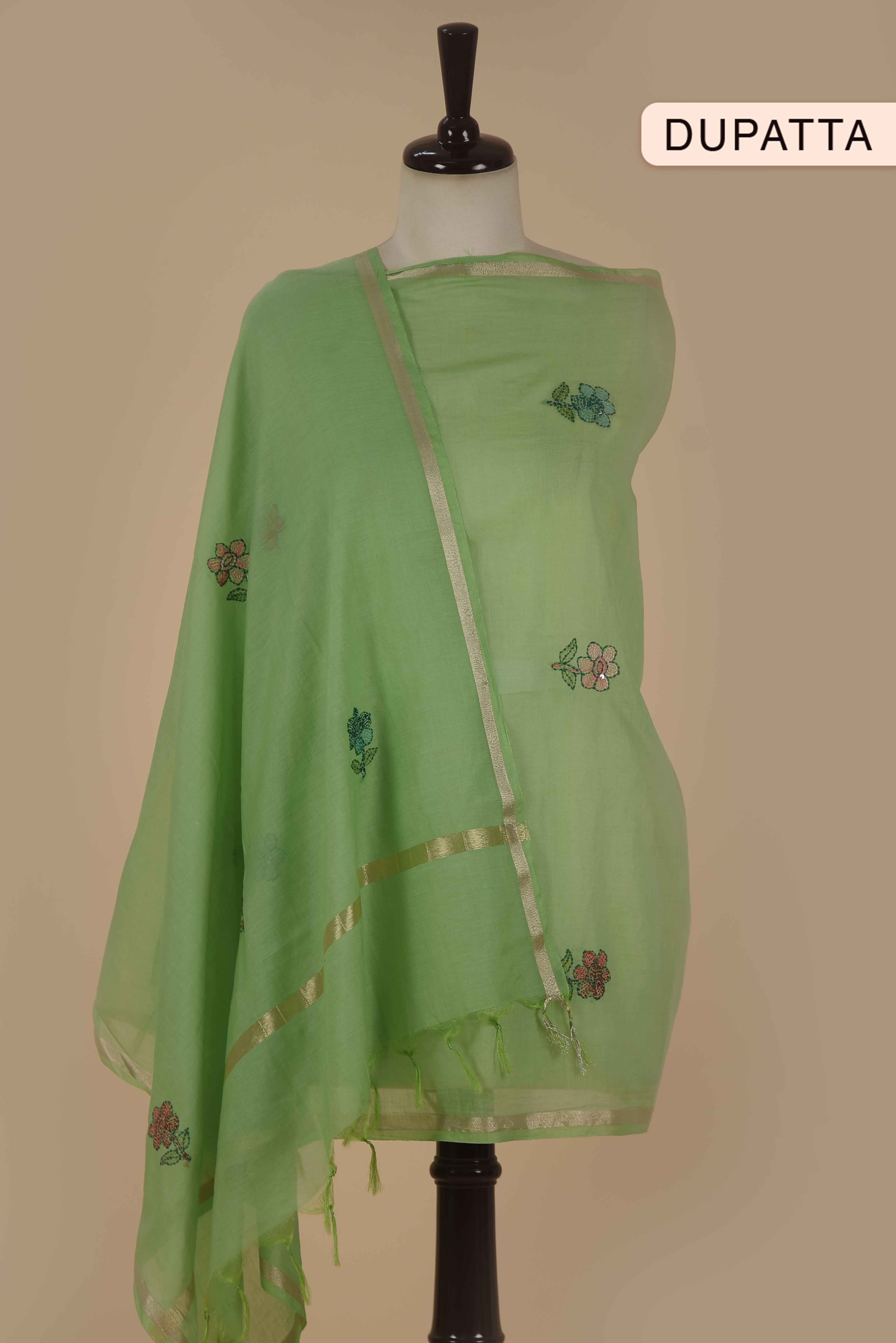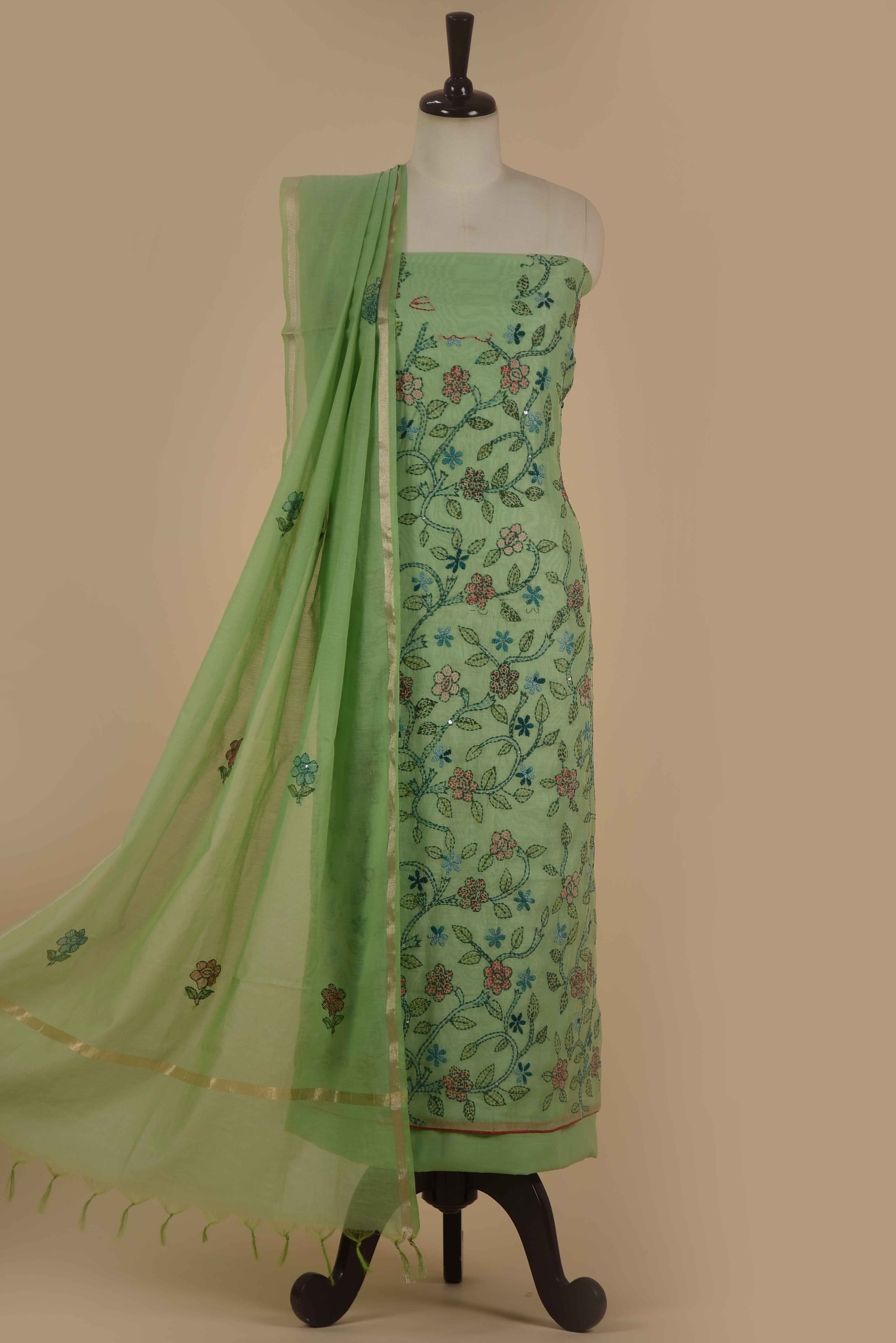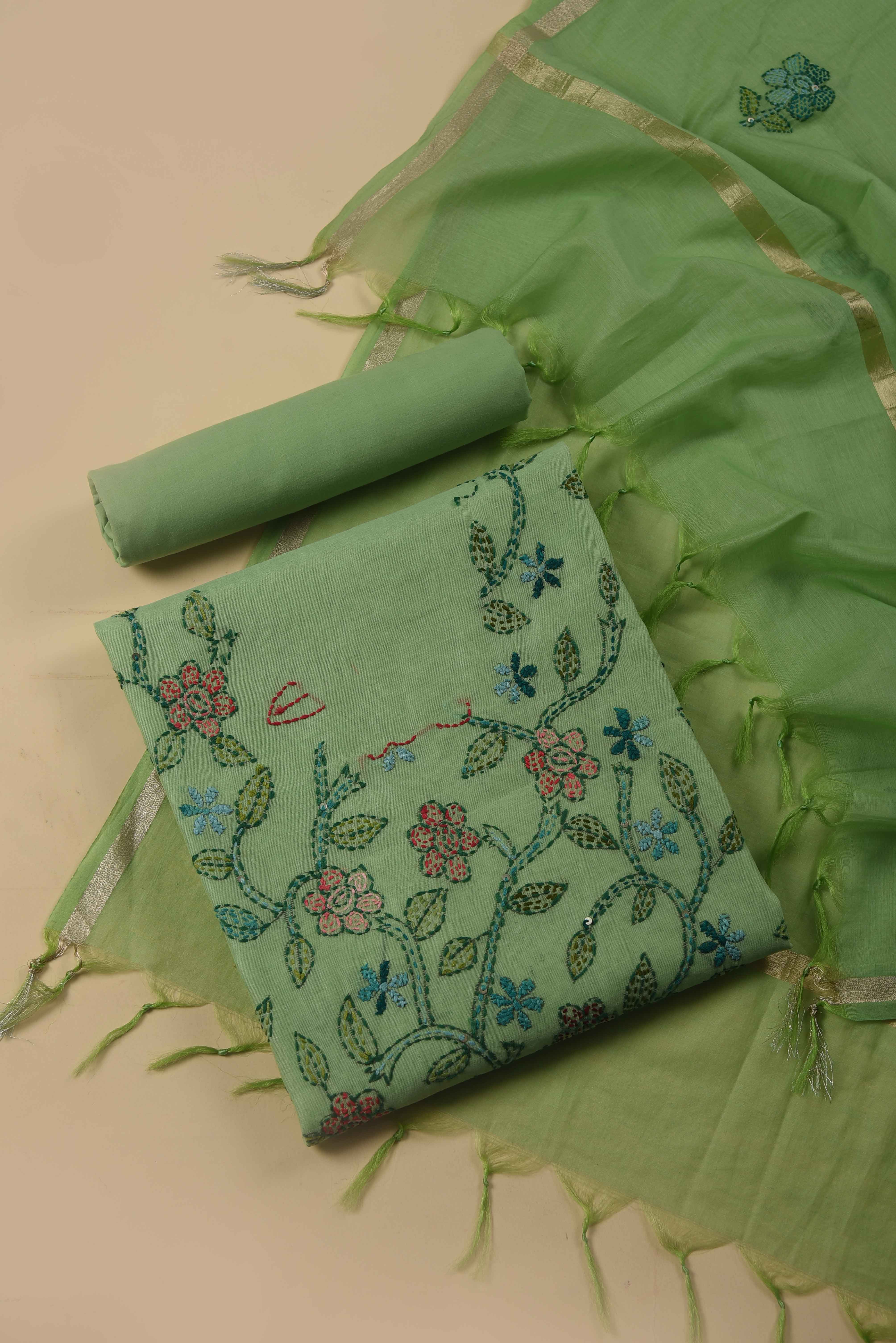 Green Chanderi Embroidered Unstitched Suit Fabric Set with Chanderi Dupatta