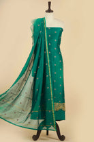 Green Chanderi Embroidered Unstitched Suit Fabric Set with Chanderi Dupatta