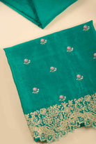 Green Chanderi Embroidered Unstitched Suit Fabric Set with Chanderi Dupatta Elevate your ethnic wardrobe with this Green Chanderi Unstitched Suit Fabric Set, crafted from fine, lightweight fabric that drapes with softness and grace.
