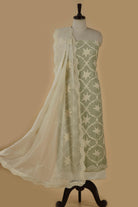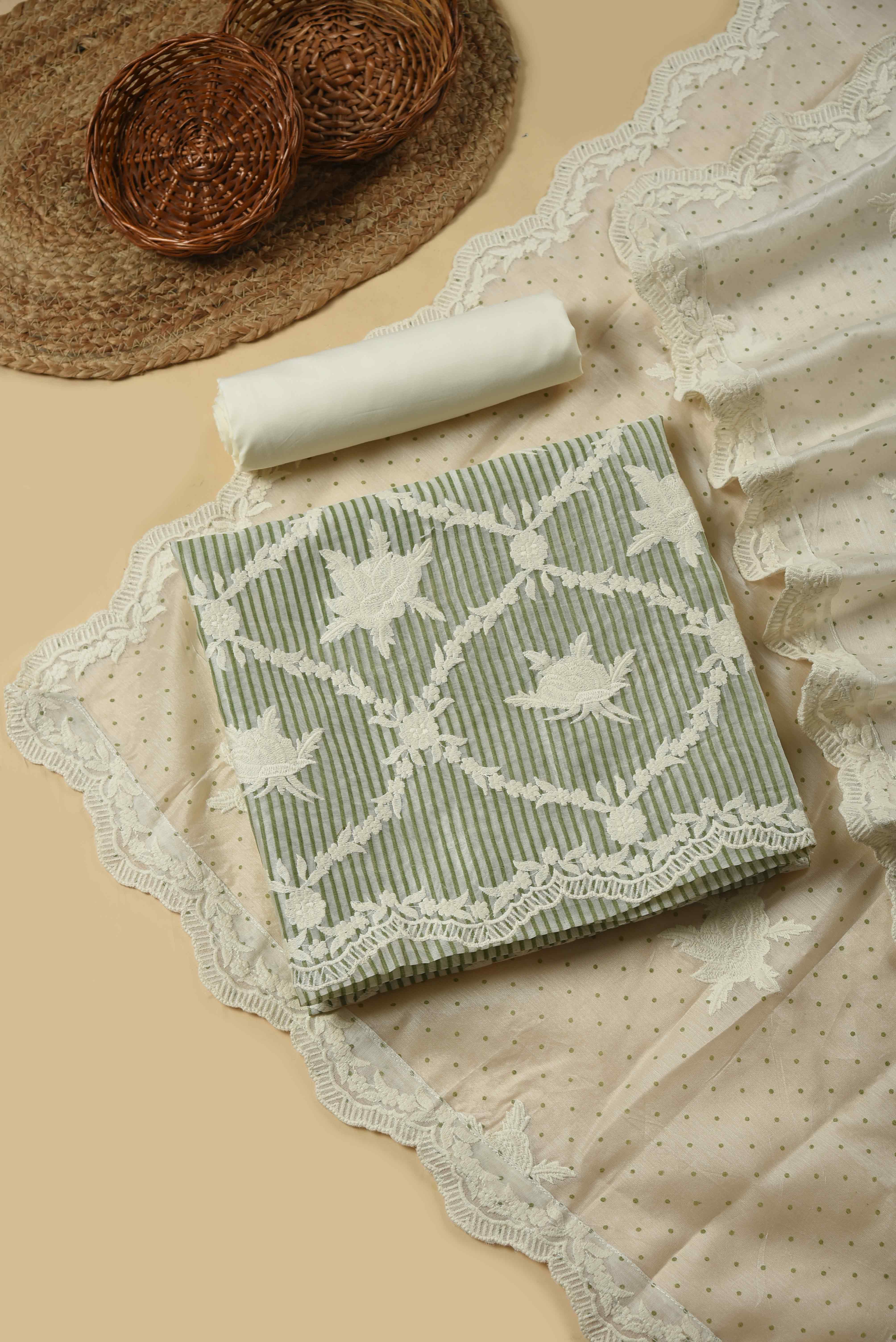 - Add a touch of charm to your ethnic collection with this elegant Green Chanderi Unstitched Suit Fabric Set, perfect for everyday grace and light festive occasions.