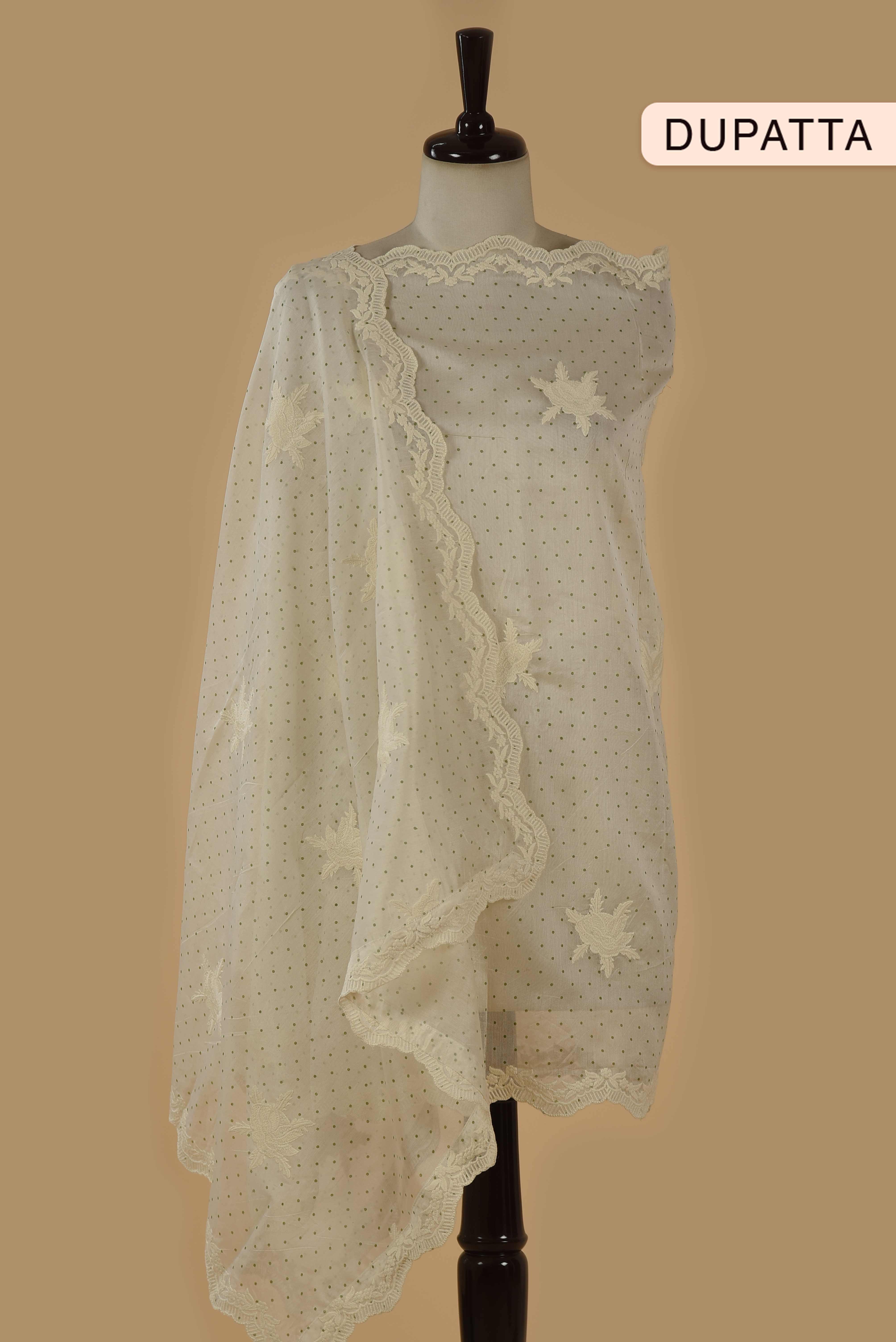 - Paired with a coordinated Chanderi dupatta adorned with subtle prints, embroidery, and scalloped lace edges, this set brings a refined and feminine appeal.