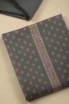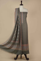 Grey Winter Wear Jamdani Wool Spun Blend Unstitched Suit Fabric Set With Wool Spun Blend Stole