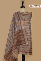 Light Gray Silk Blend Printed and Embellished Unstitched Suit Set with Silk Blend Dupatta