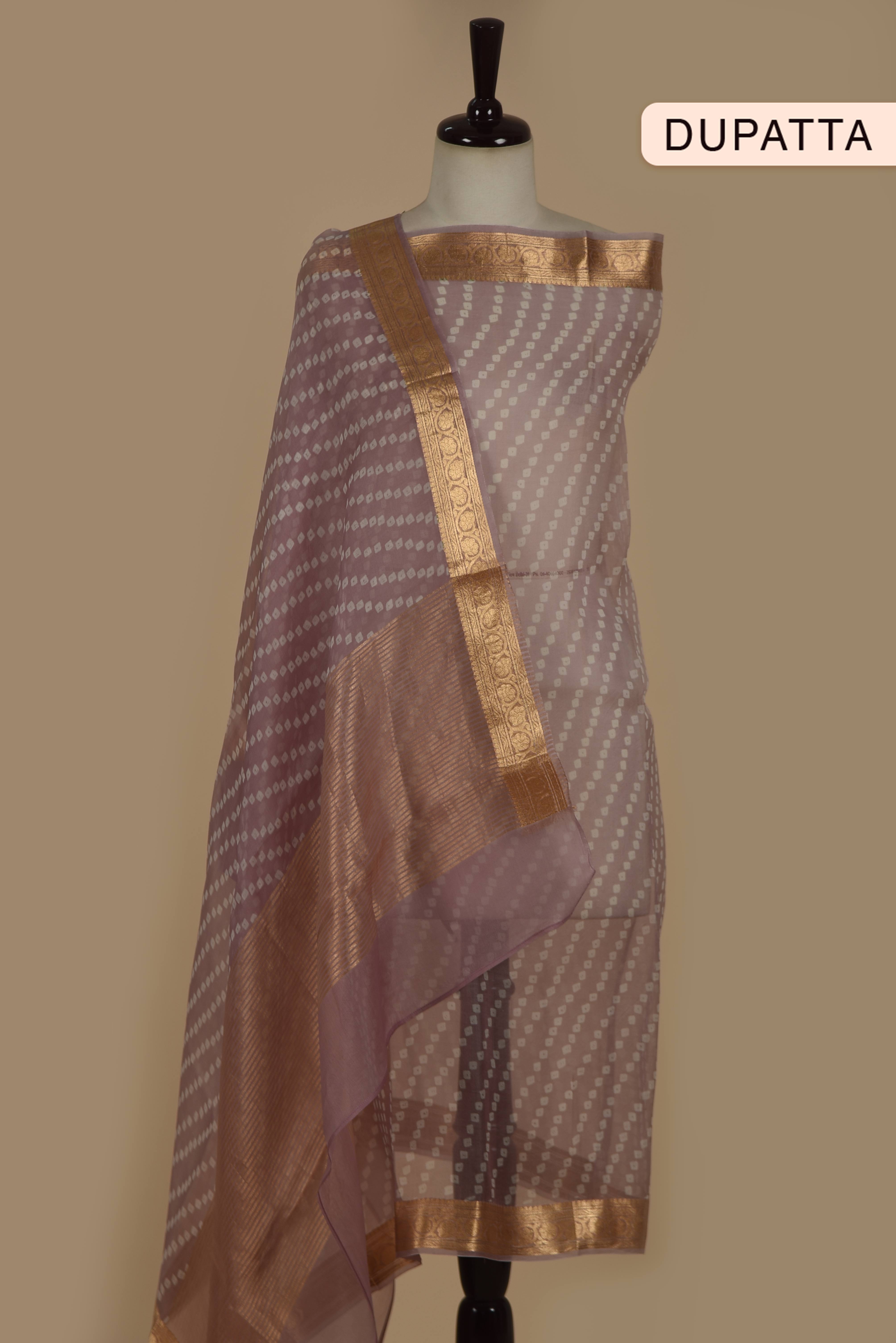 Light Mauve Organza Silk Printed & Hand Embellished Unstitched Suit Set with Organza Silk Dupatta