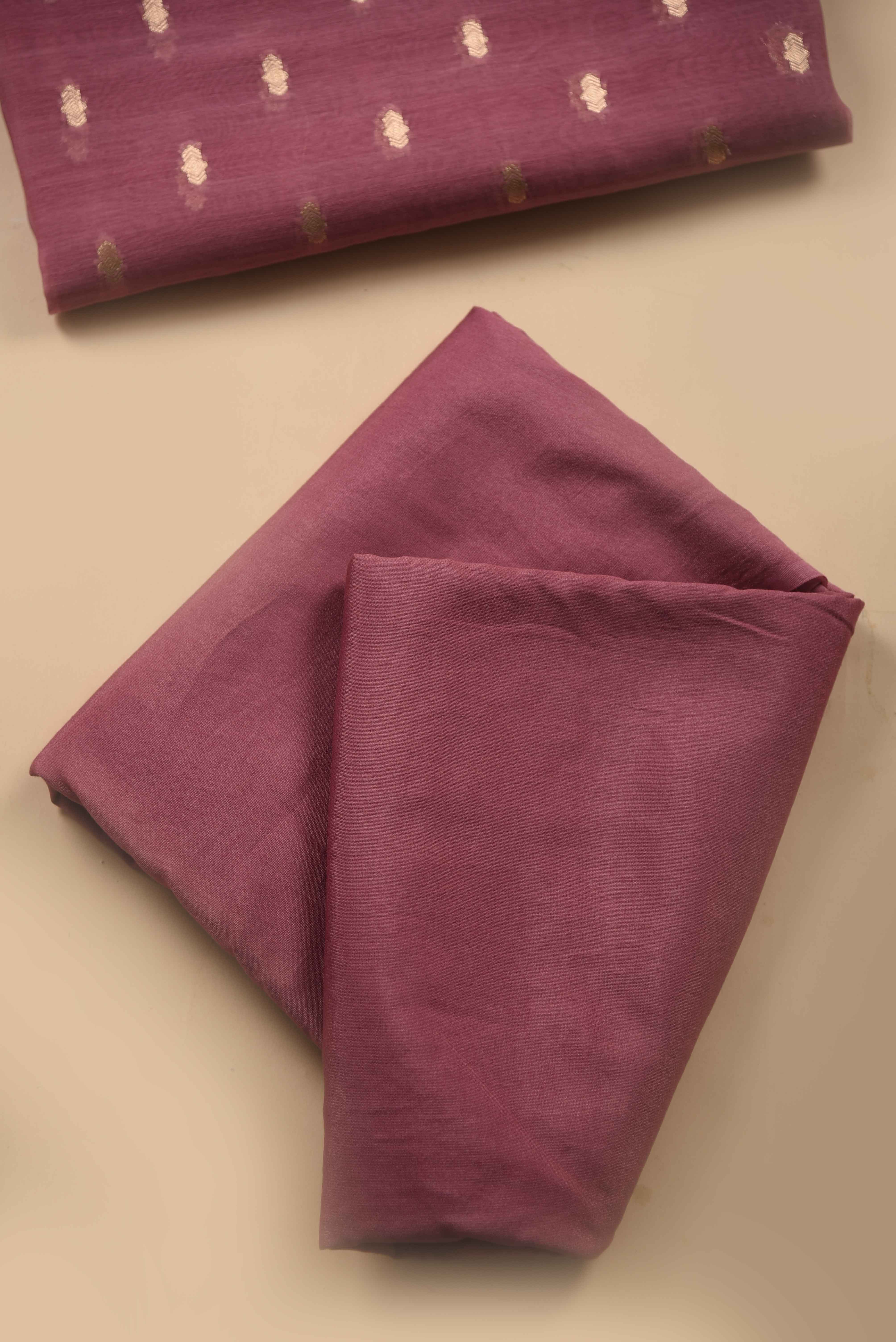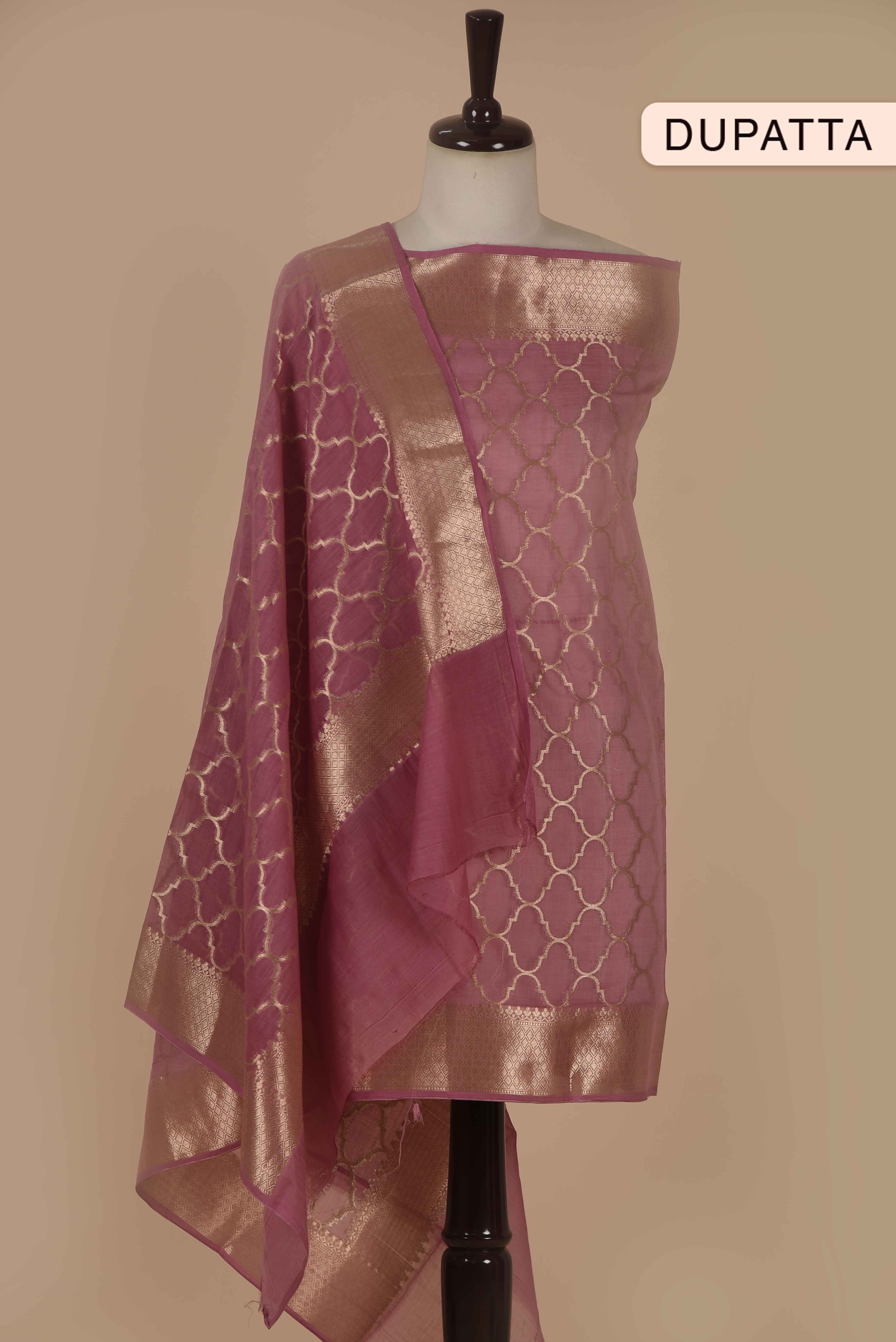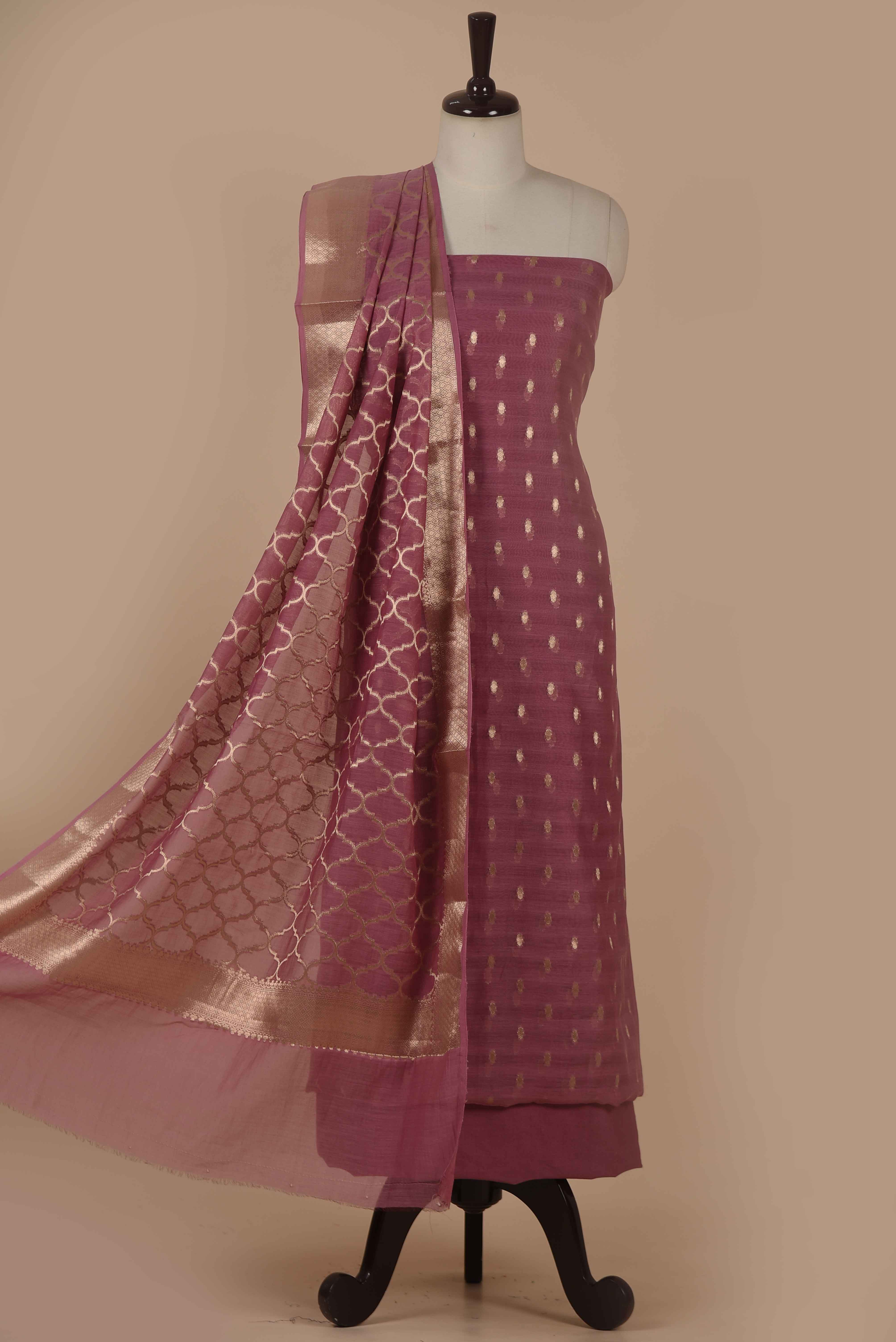 Mauve Banarasi Chanderi Woven Unstitched Suit Fabric Set With Banarasi Chanderi Dupatta