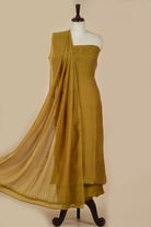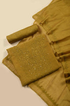 - This Mehndi Green Mul Chanderi Embroidered Unstitched Suit Fabric Set features delicate embroidery on soft, breathable Mul Chanderi fabric, radiating elegance and vibrancy.