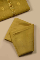 Mustard Chanderi Woven With Embroidered Unstitched Suit Fabric Set With Chanderi Woven Dupatta