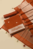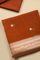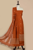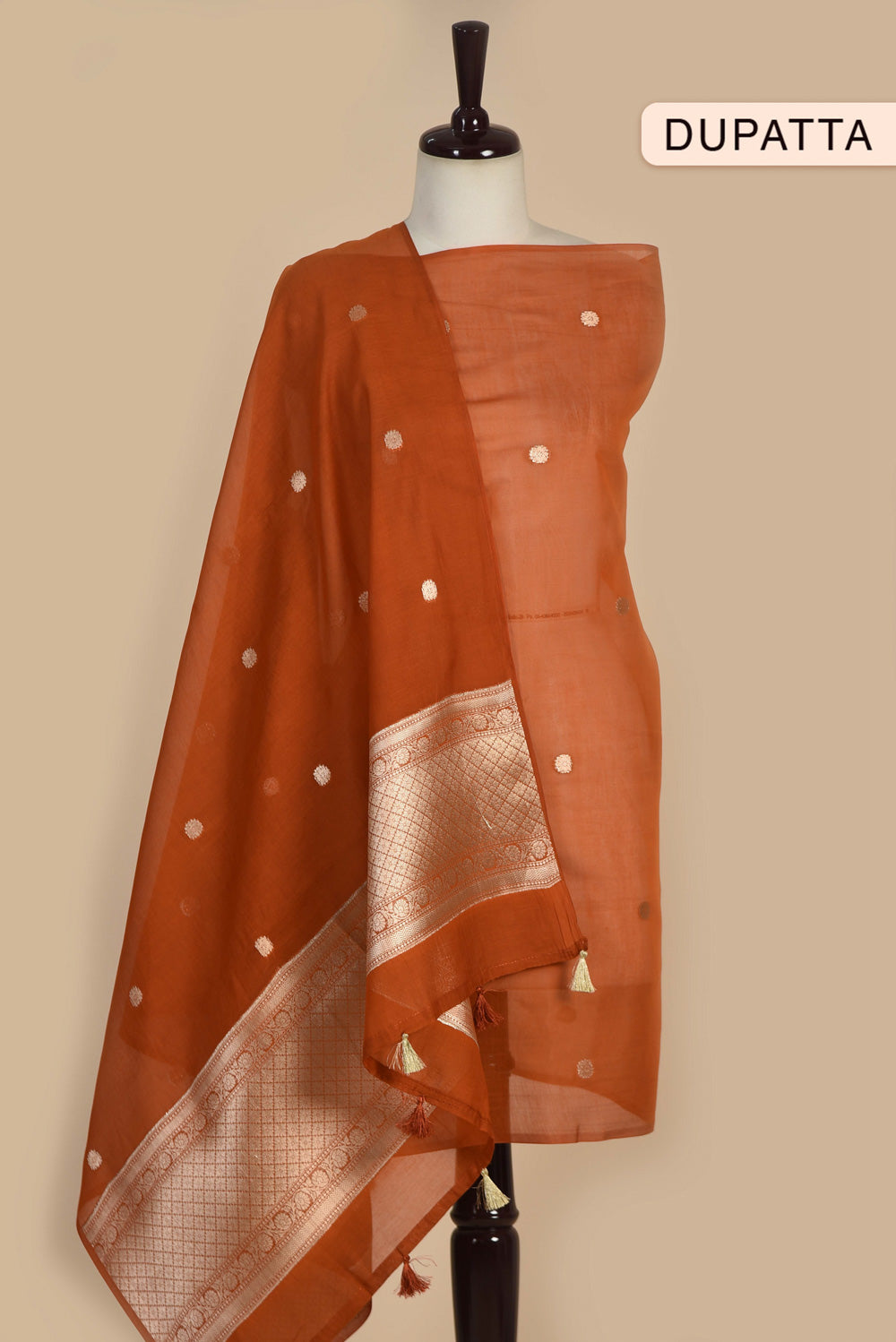 Orange Banarasi Chanderi Woven Unstitched Suit Fabric Set With Banarasi Chanderi Woven Dupatta