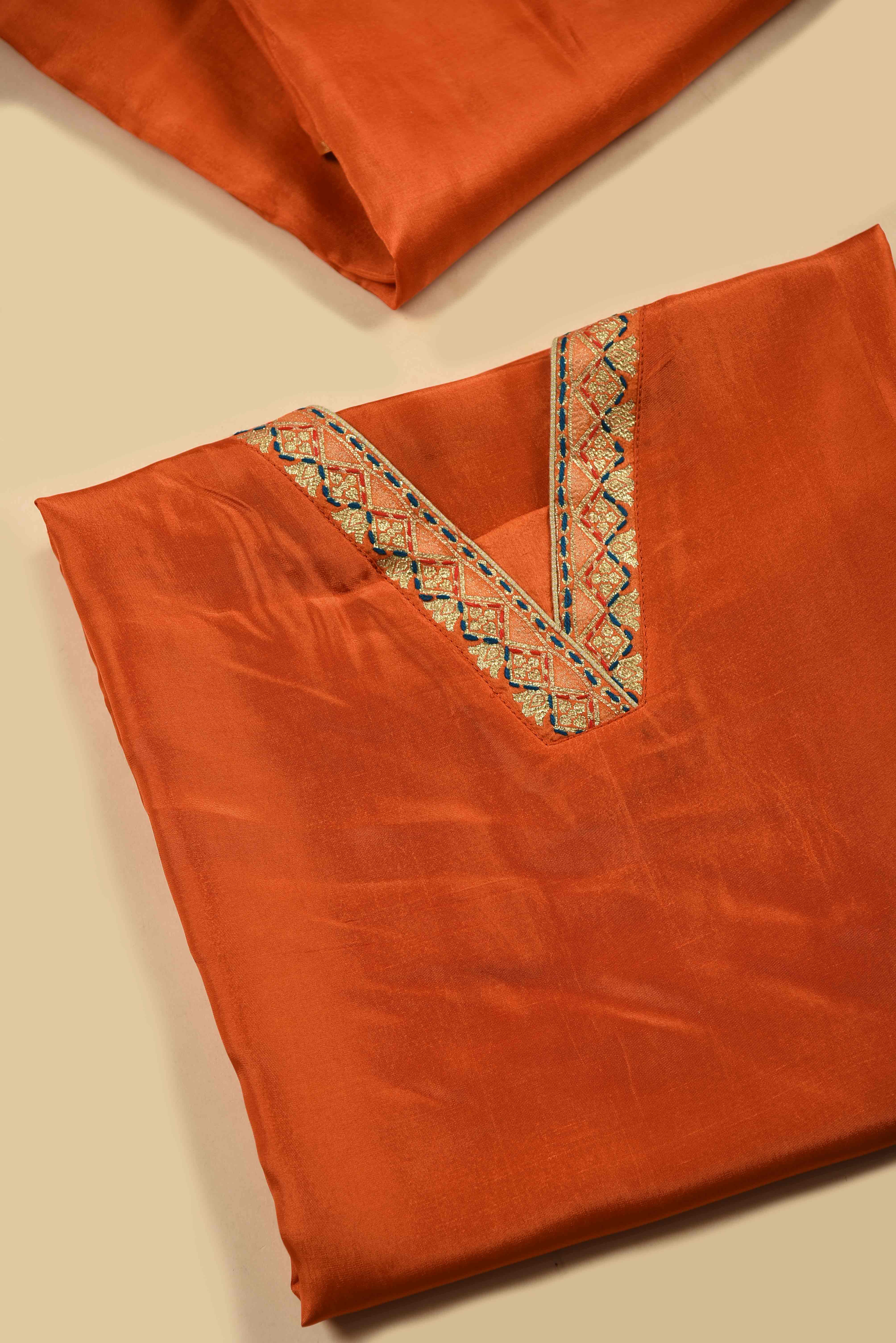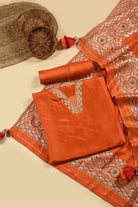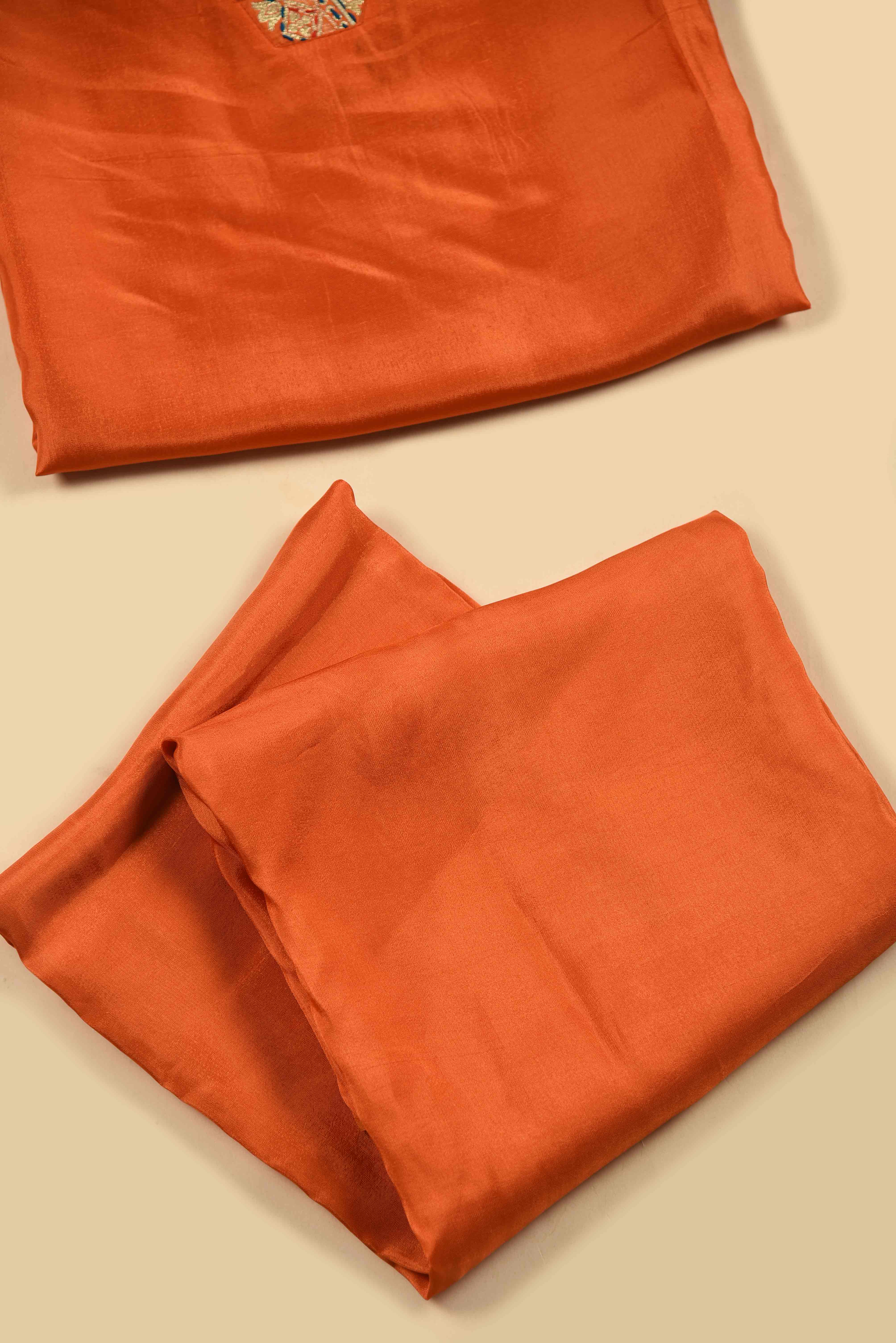 Orange Silk Viscose Woven With Embroidered Unstitched Suit Fabric Set With Silk Viscose Woven With Embroidered Dupatta