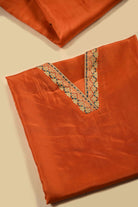 Made for women who love rich festive hues with a refined traditional touch, this Orange Silk Viscose Woven With Embroidered Unstitched Suit Fabric Set With Silk Viscose Woven With Embroidered Dupatta is designed to make a graceful statement. Crafted in a luxurious silk viscose blend, the fabric offers a smooth, soft feel with a subtle sheen that enhances its elegant appeal. The kurta is beautifully highlighted with delicate embroidery along the neckline, adding a refined focal point. The vibrant orange base is complemented by the intricately woven dupatta, featuring detailed borders and scattered motifs that bring depth, texture, and a heritage-inspired charm to the ensemble. The fluid drape of the dupatta further elevates the overall look, making it perfect for festive occasions, celebrations, and evening gatherings.