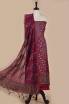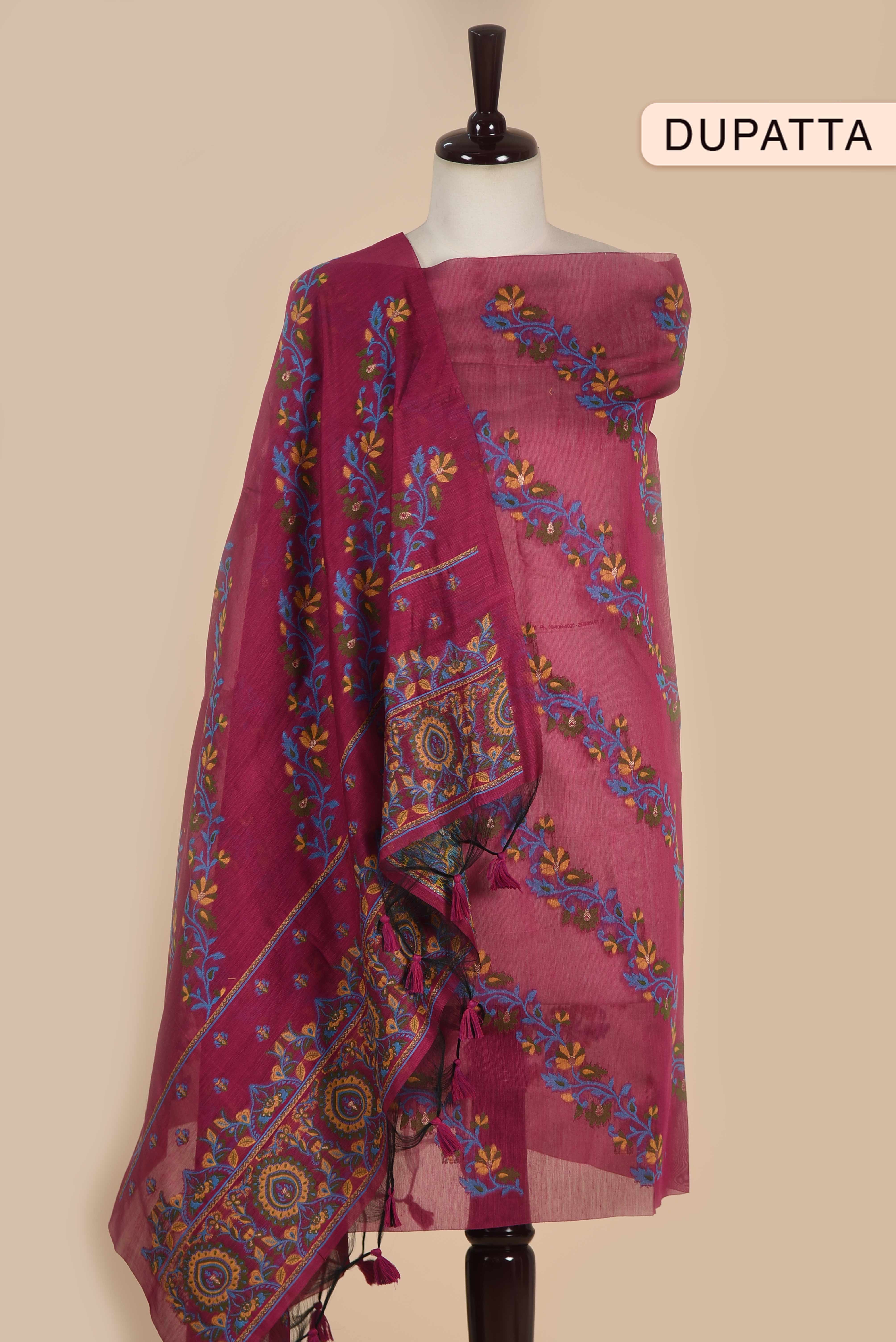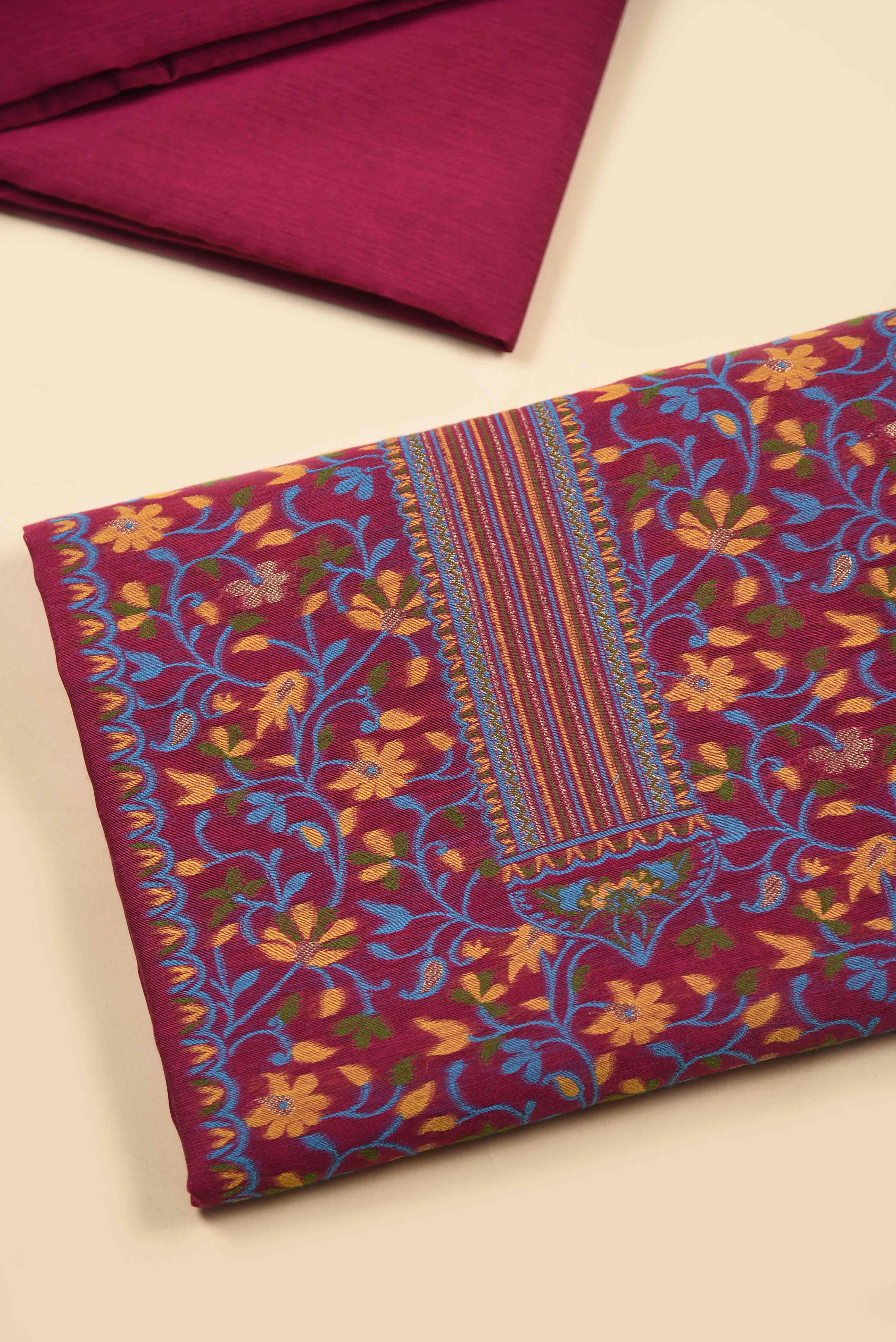 Pink Chanderi Silk Blend Jamdani Woven Unstitched Suit Fabric Set With Chanderi Silk Woven Dupatta