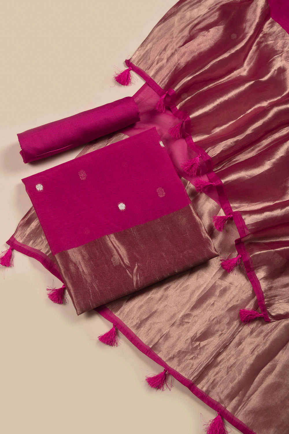 Pink Chanderi Silk Woven Unstitched Suit Fabric Set with Chanderi Silk Woven Dupatta