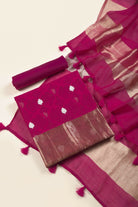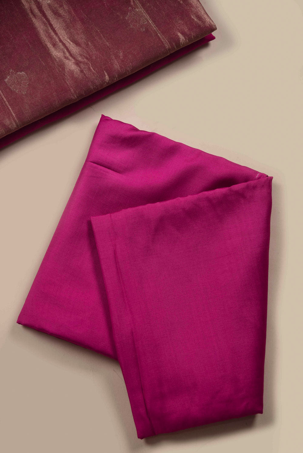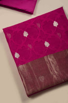 - Discover refined luxury with this stunning Pink Chanderi silk unstitched suit fabric set, enhanced with exquisite zari work.