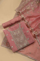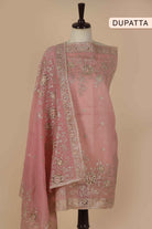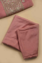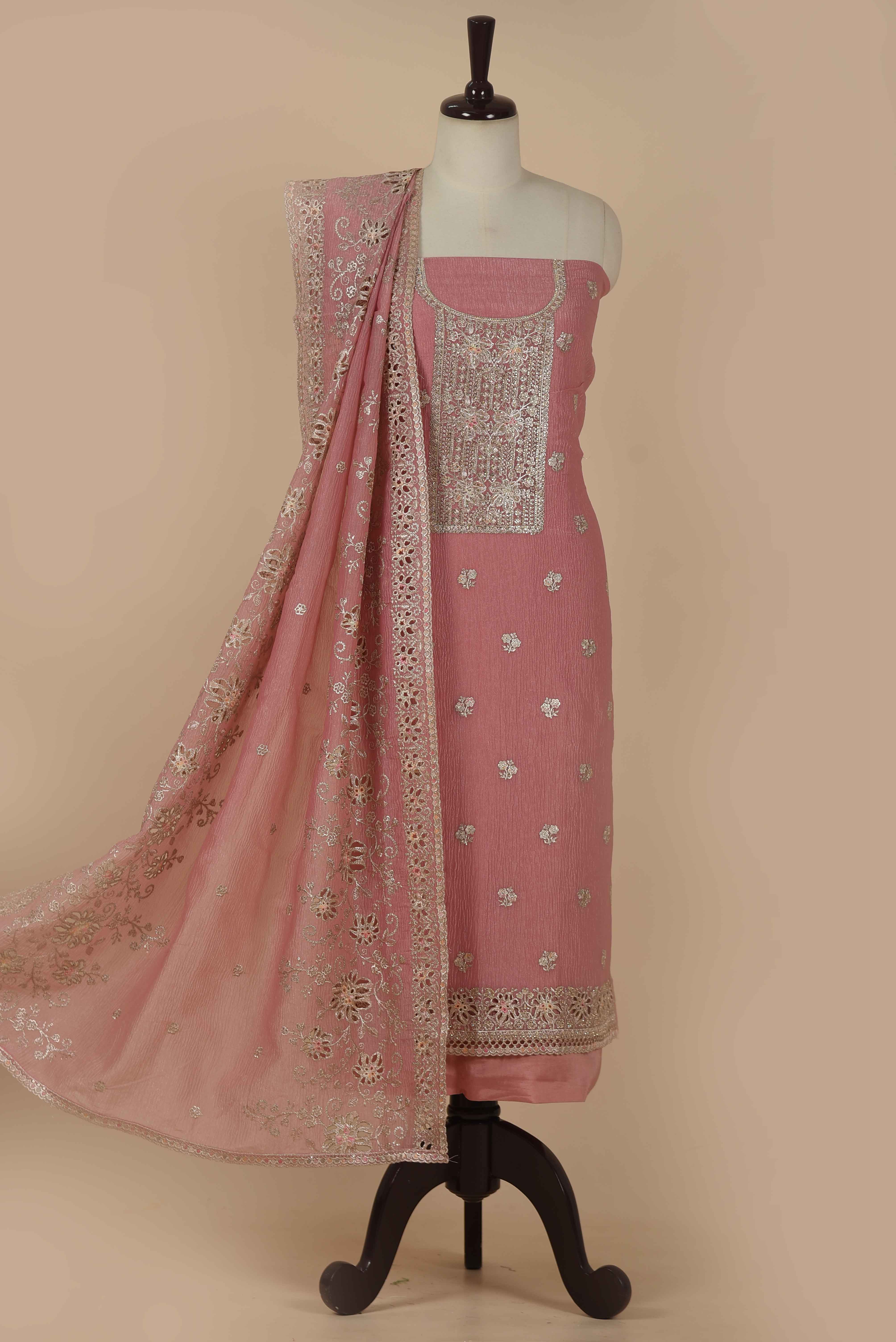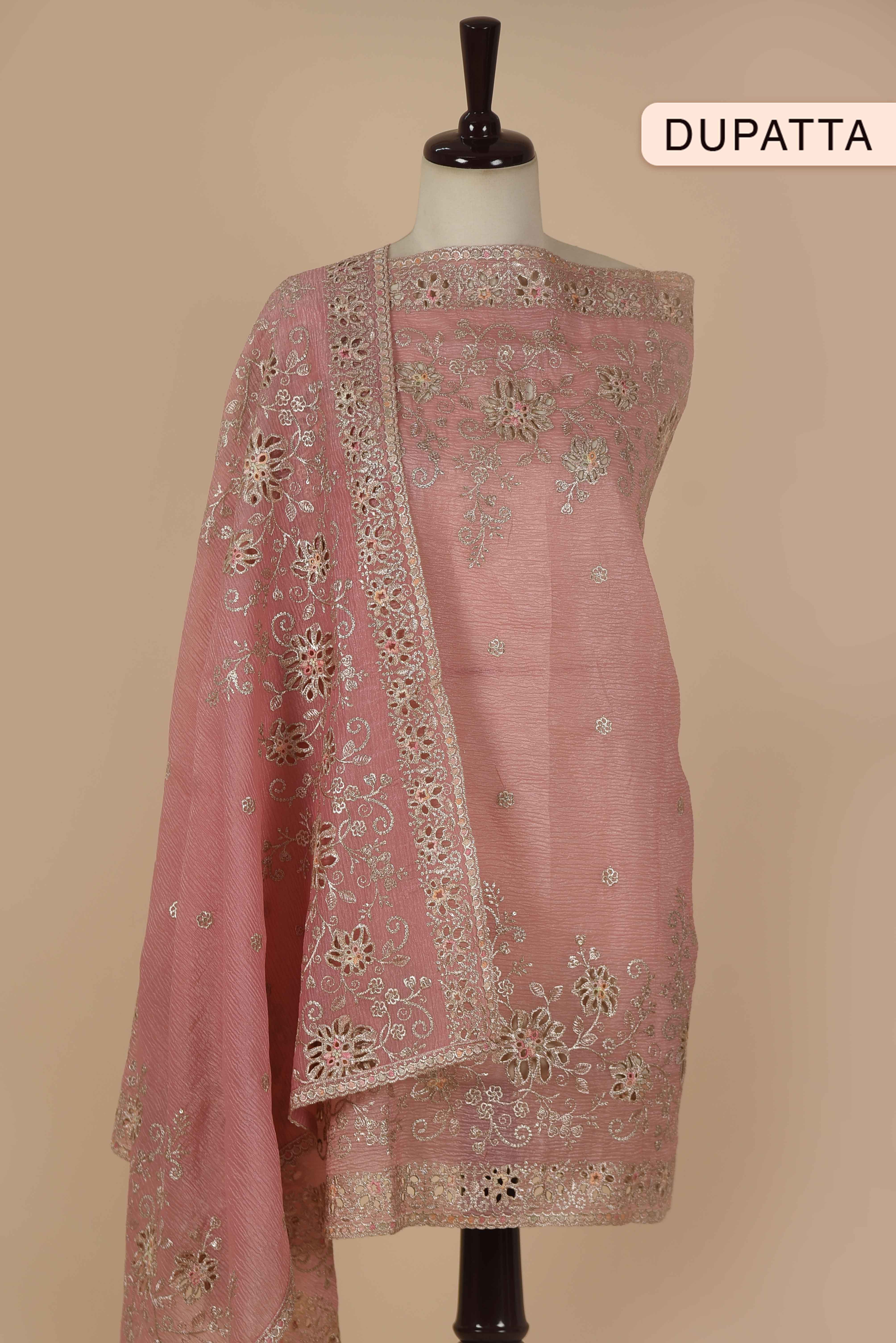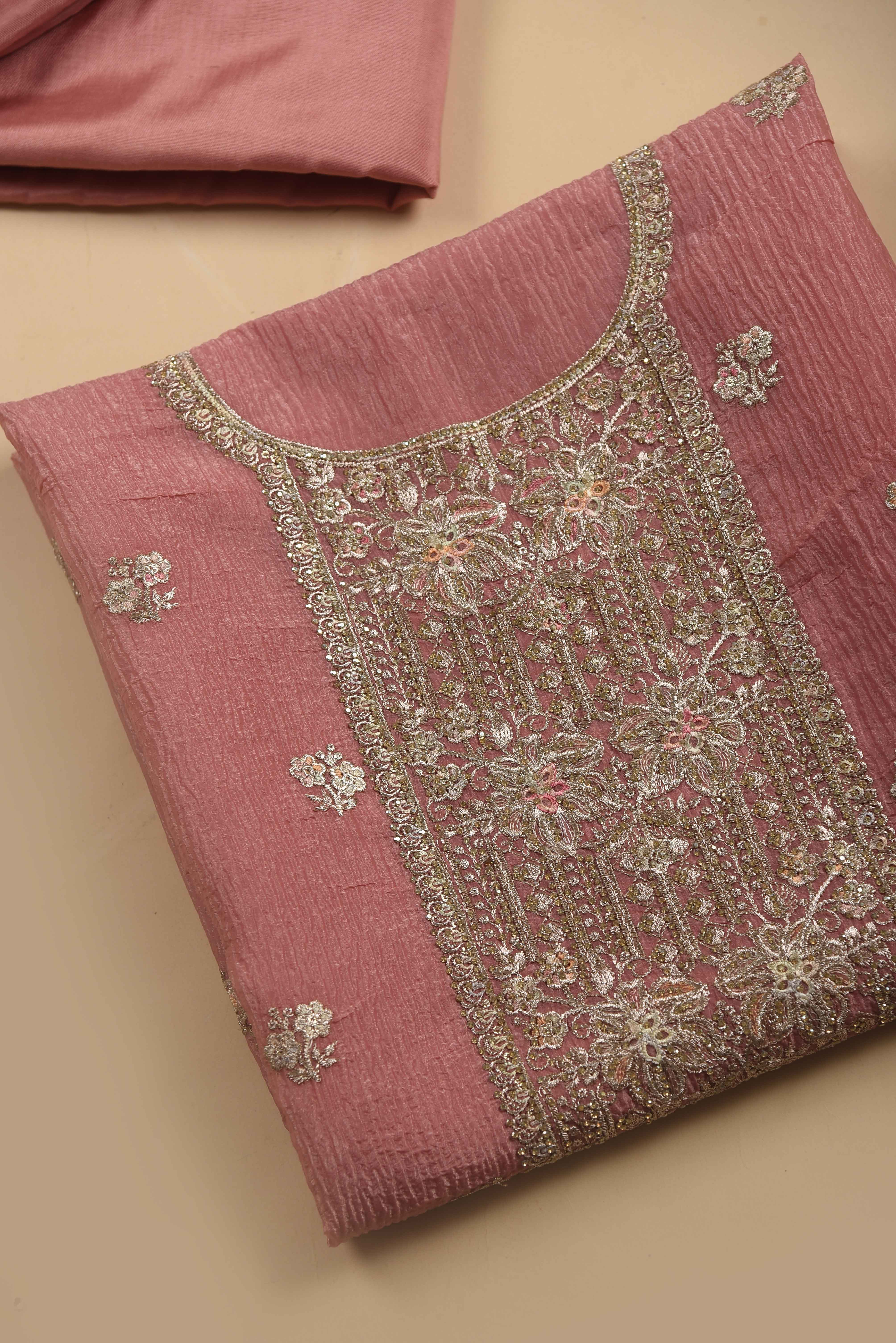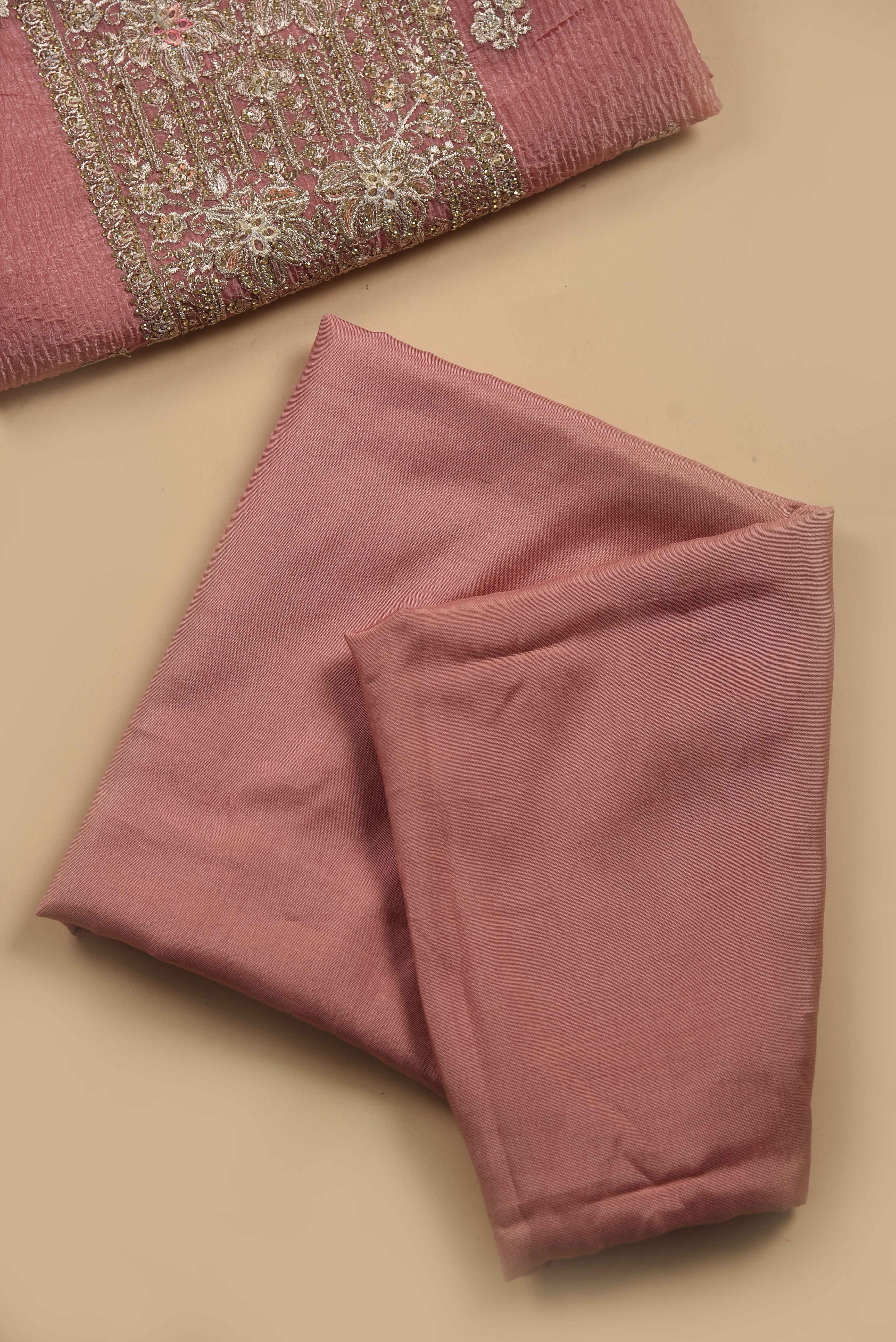 Pink Crushed Silk Embroidered Unstitched Suit Fabric Set with Silk Embroidered Dupatta