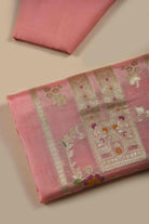 Pink Organza Silk Woven Unstitched Suit Set with Organza Silk Dupatta
