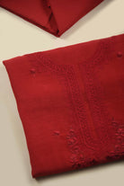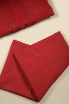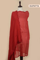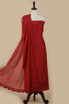 Red Mul chanderi Embroidered Unstitched Suit Fabric Set With Mul Chanderi Embroidered Dupatta