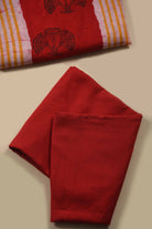- Elevate your ethnic wardrobe with our Red & Yellow Chanderi Printed Unstitched Suit Fabric Set—a graceful blend of elegance and timeless craftsmanship.
