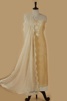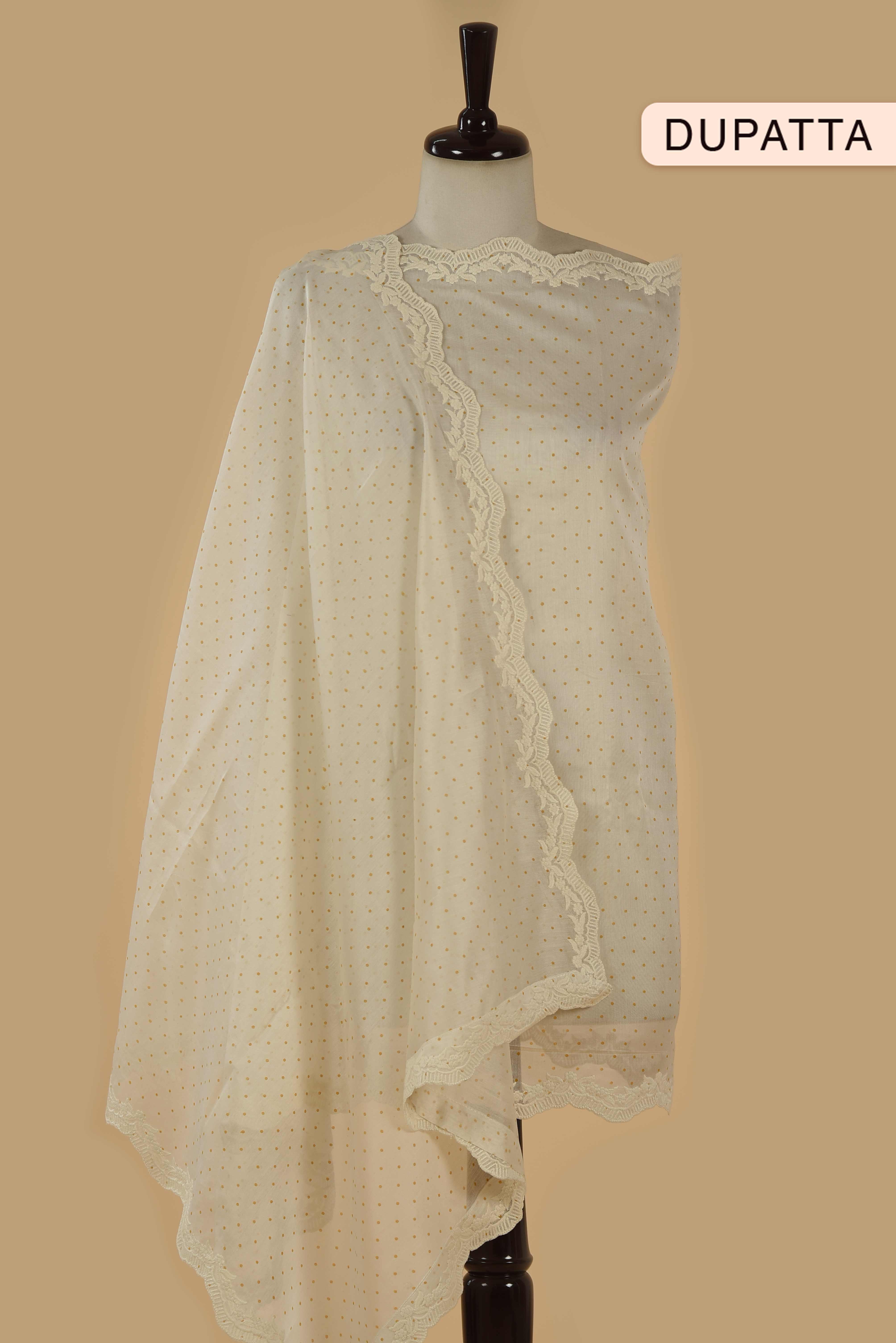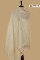- The set is paired with a beautifully coordinated Chanderi dupatta, detailed with fine prints, embroidery, and scalloped lace edges for a polished finish.