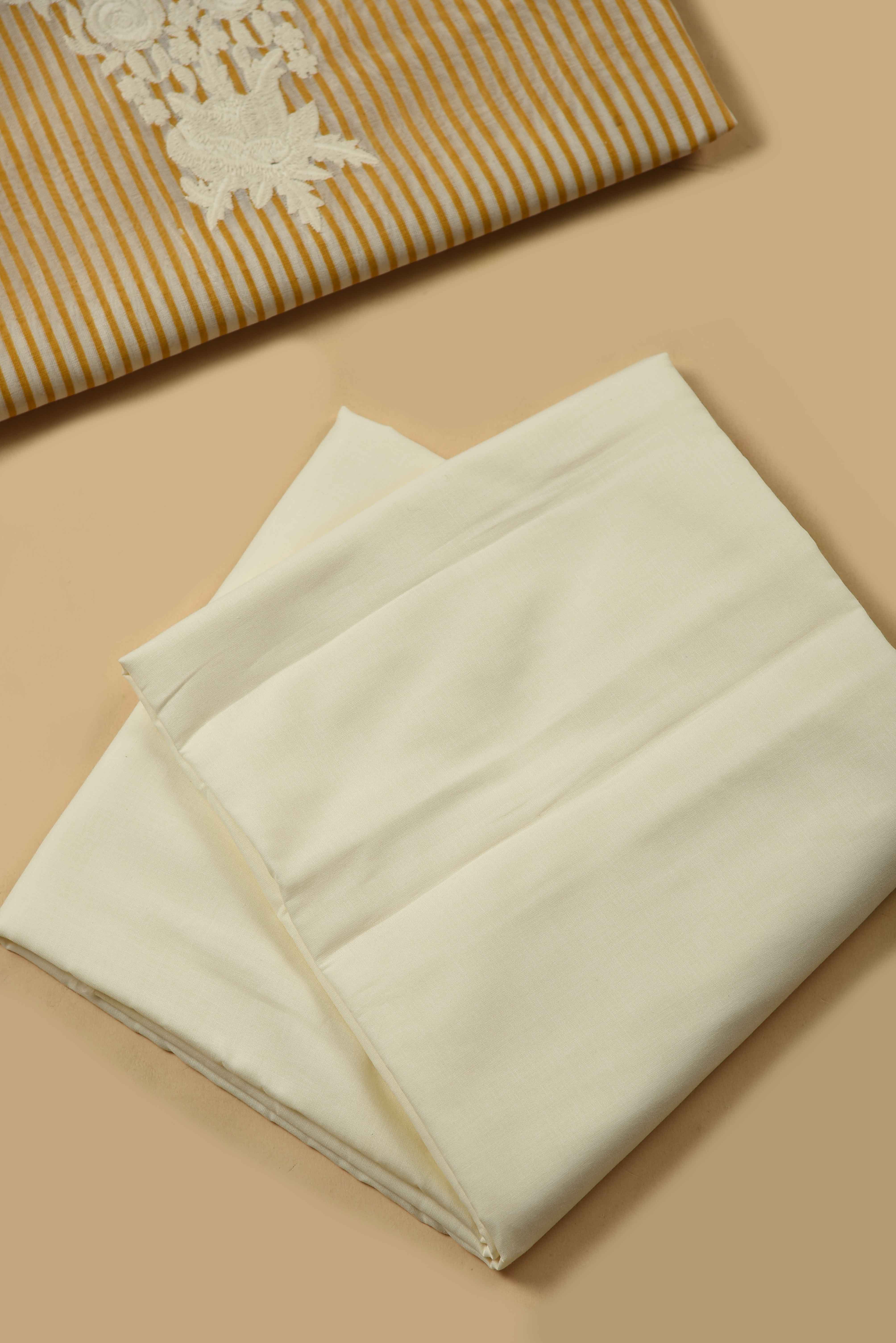 - Refresh your ethnic wardrobe with this elegant Yellow Chanderi Unstitched Suit Fabric Set, designed for effortless everyday grace and light festive wear.