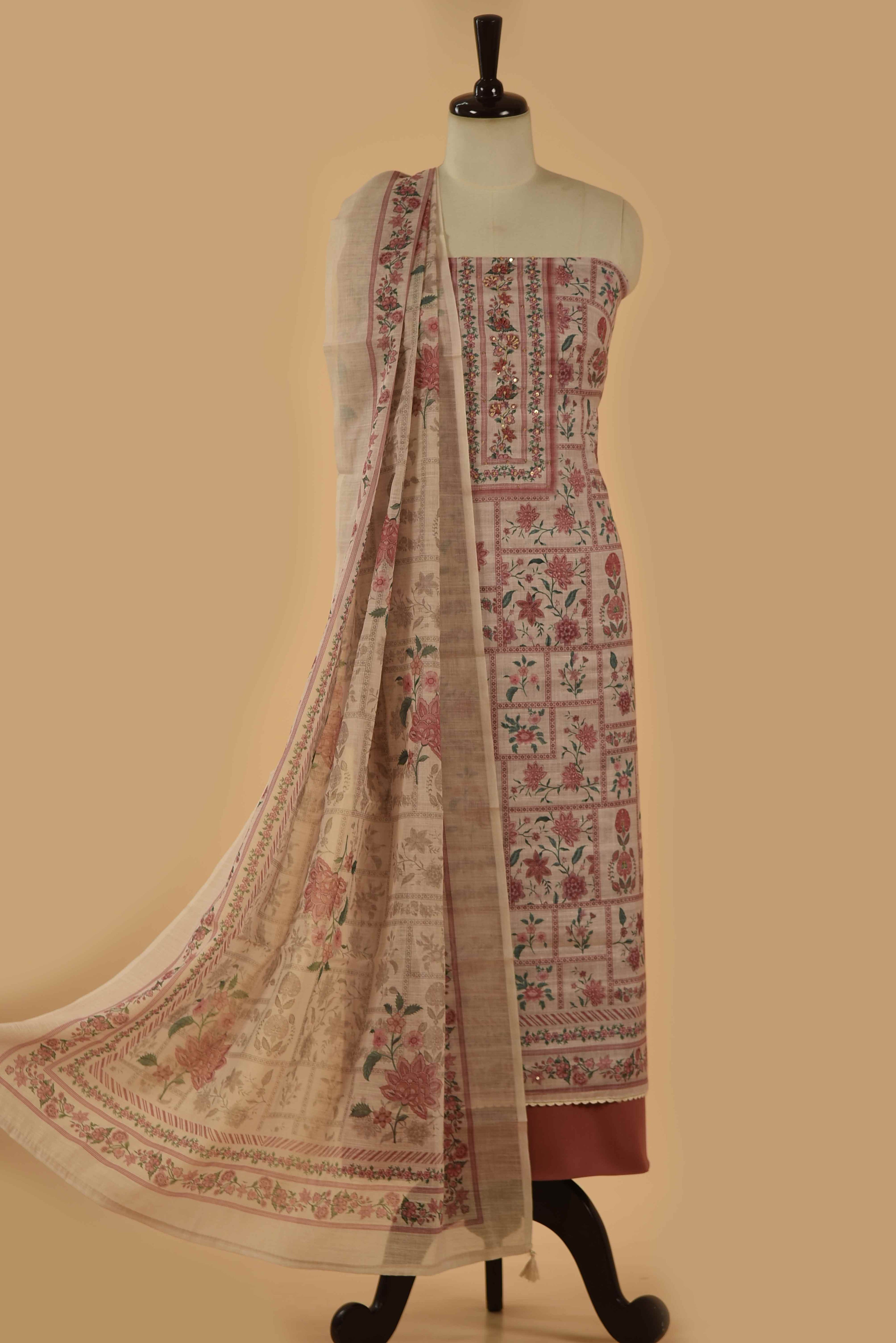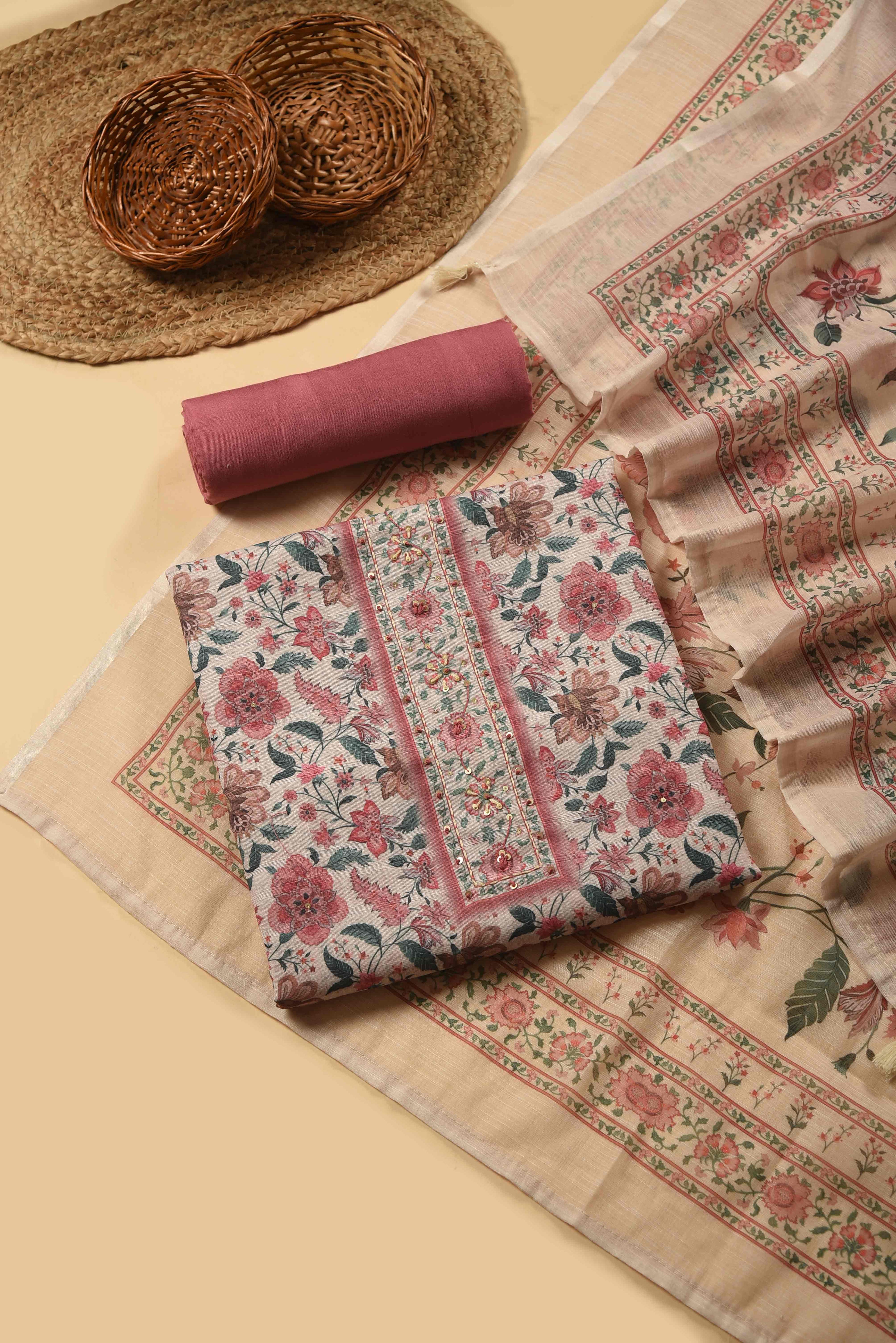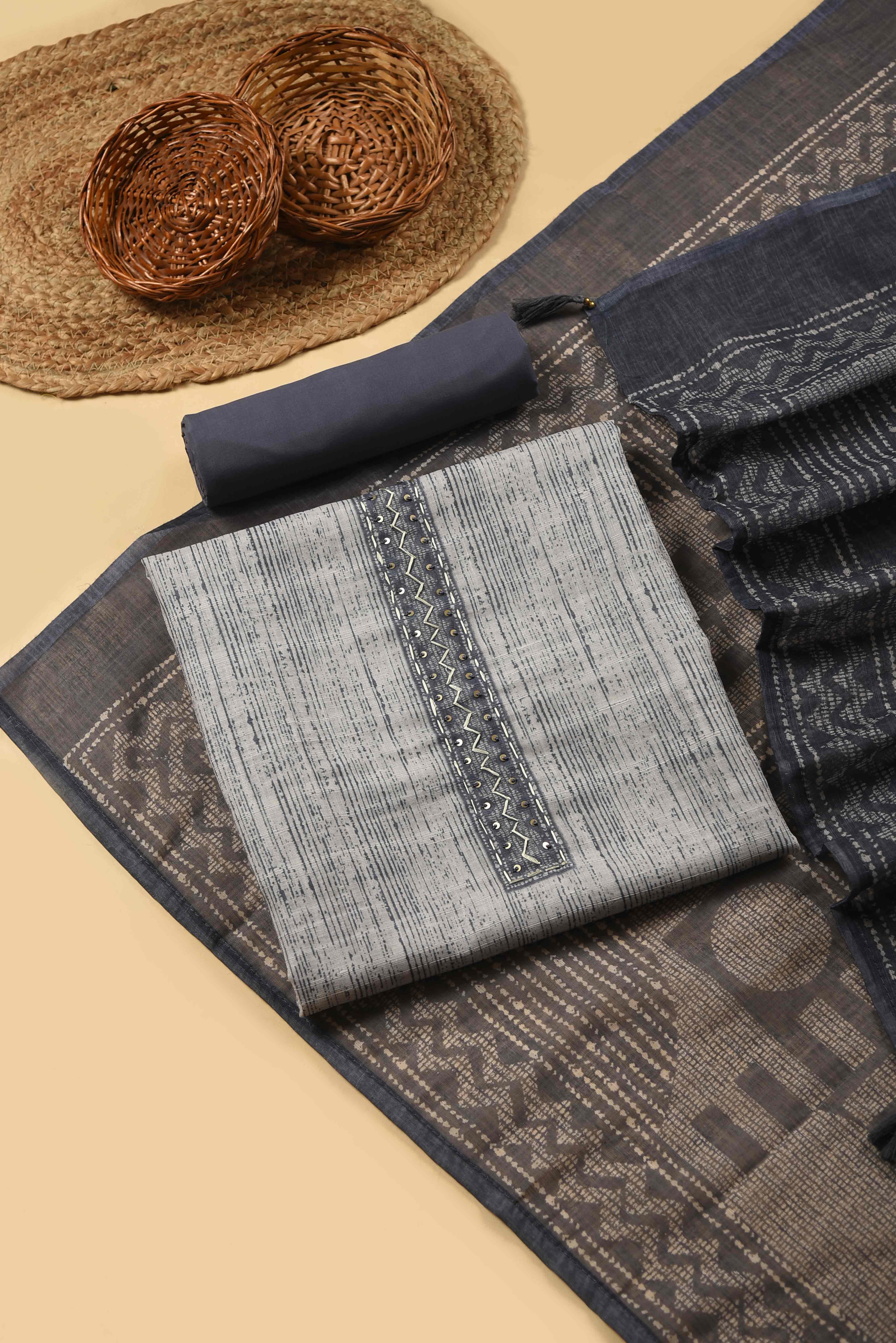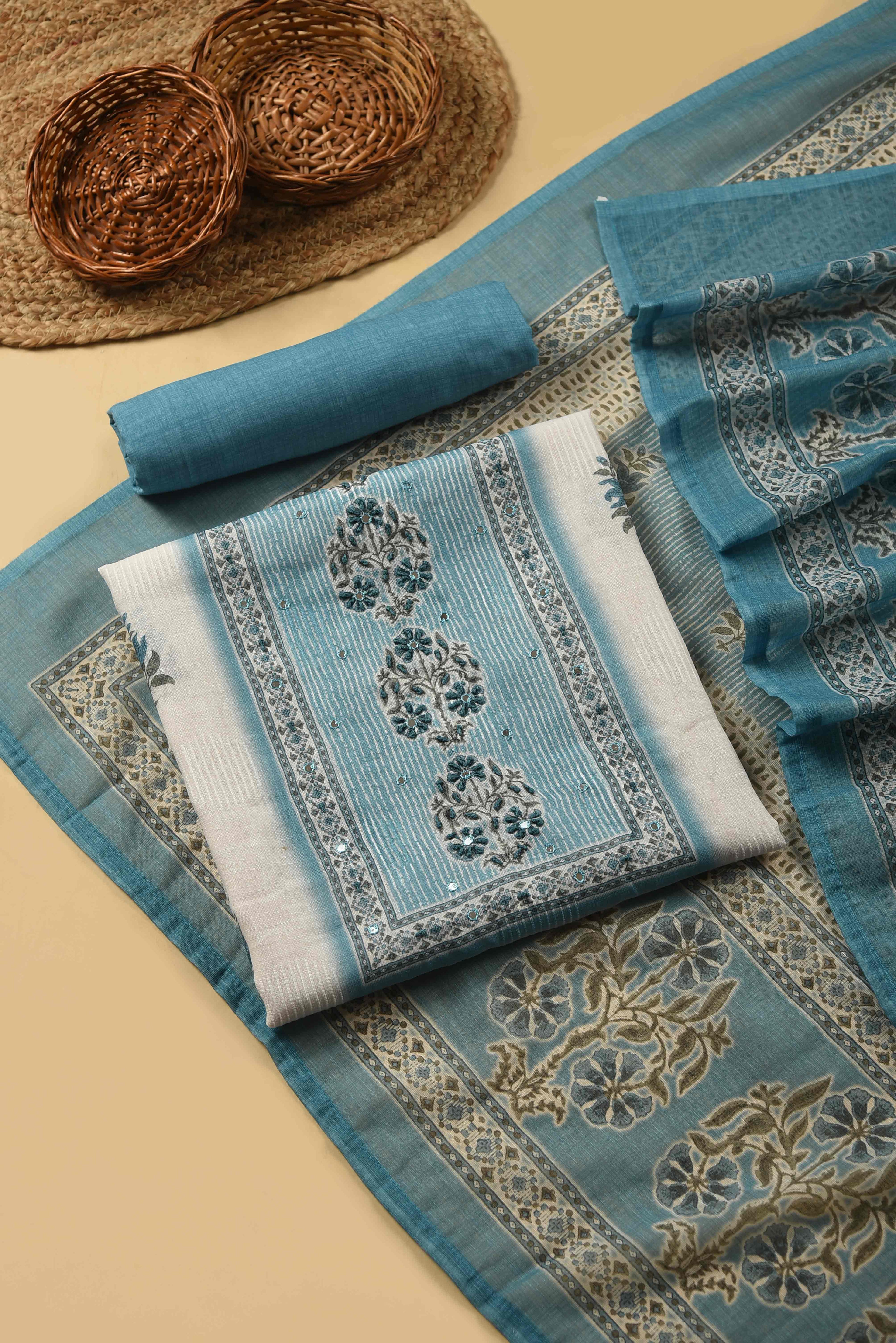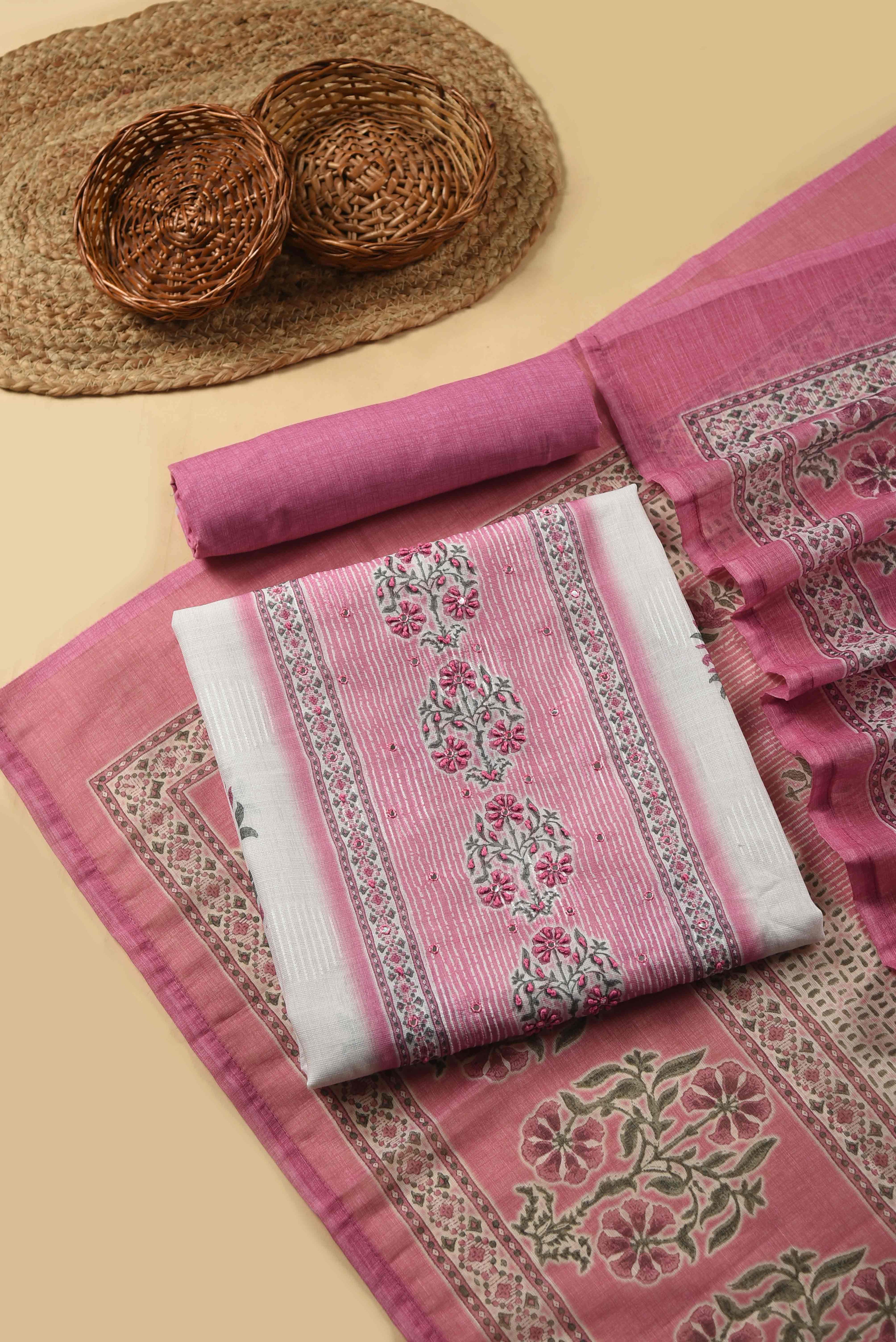 Whether you prefer classic embroidery, contemporary prints, or rich festive weaves, our unstitched suit materials give you endless possibilities. Perfect for tailoring into kurtas, salwar suits, churidars, or occasion wear, these fabrics are versatile, elegant, and crafted for comfort.