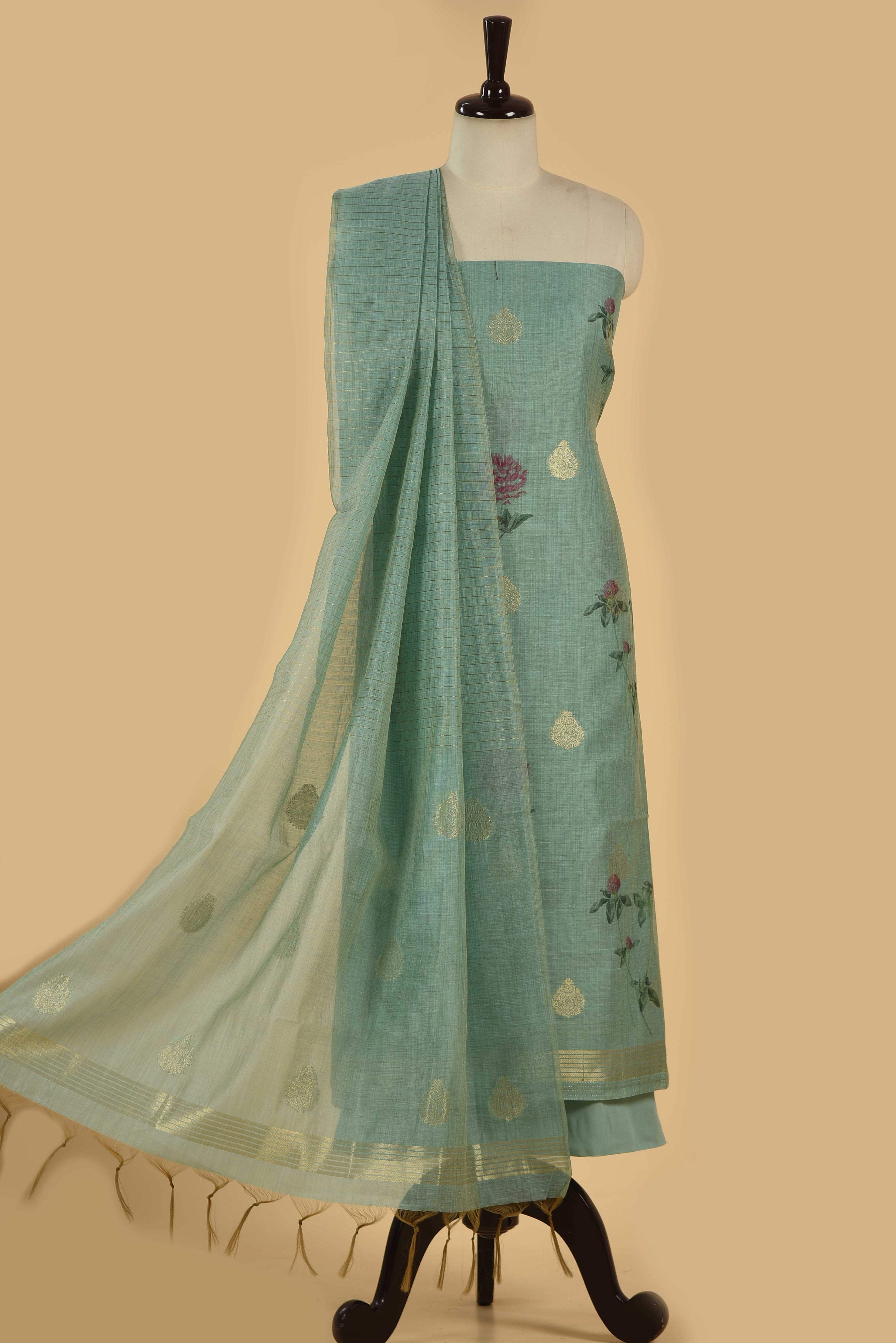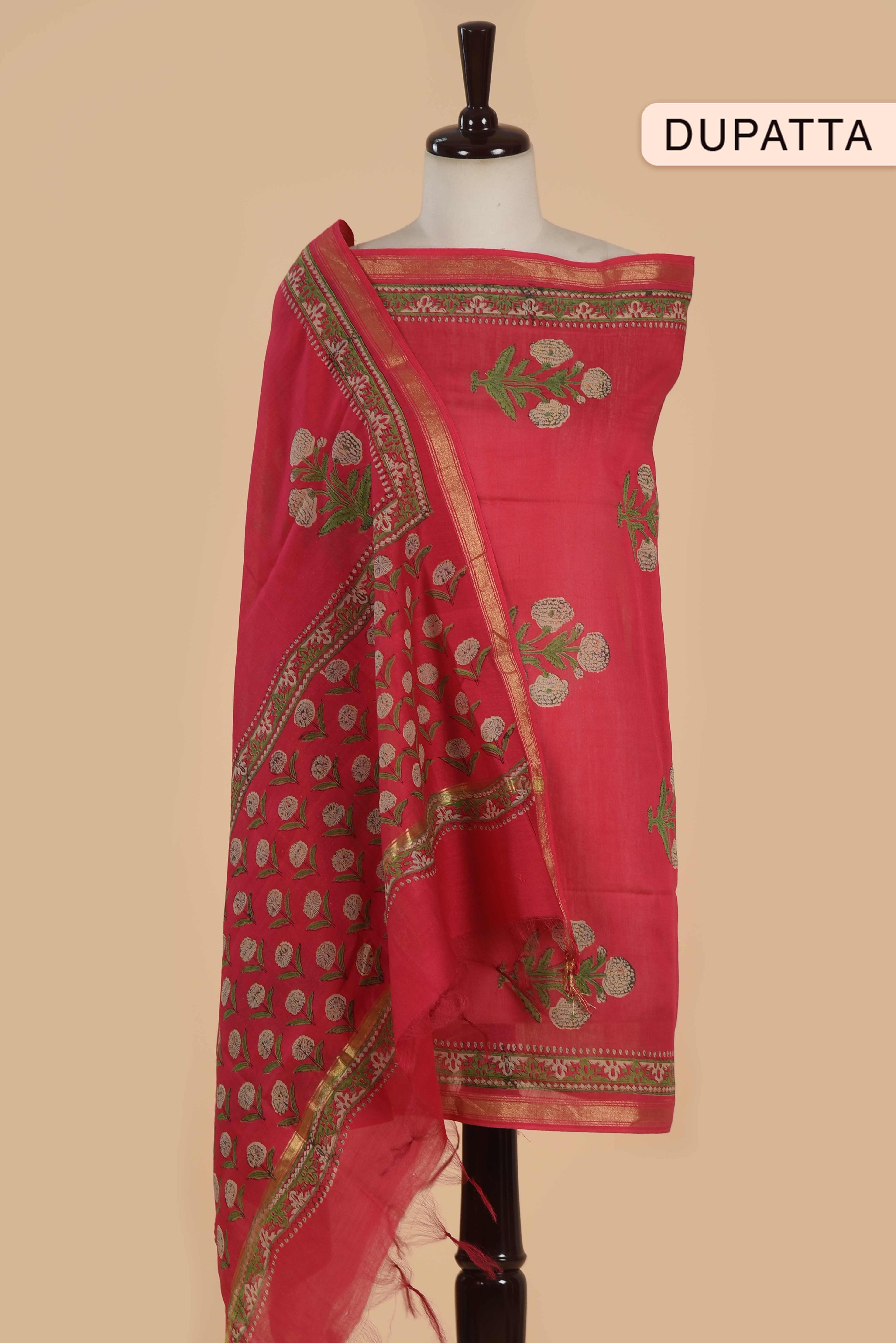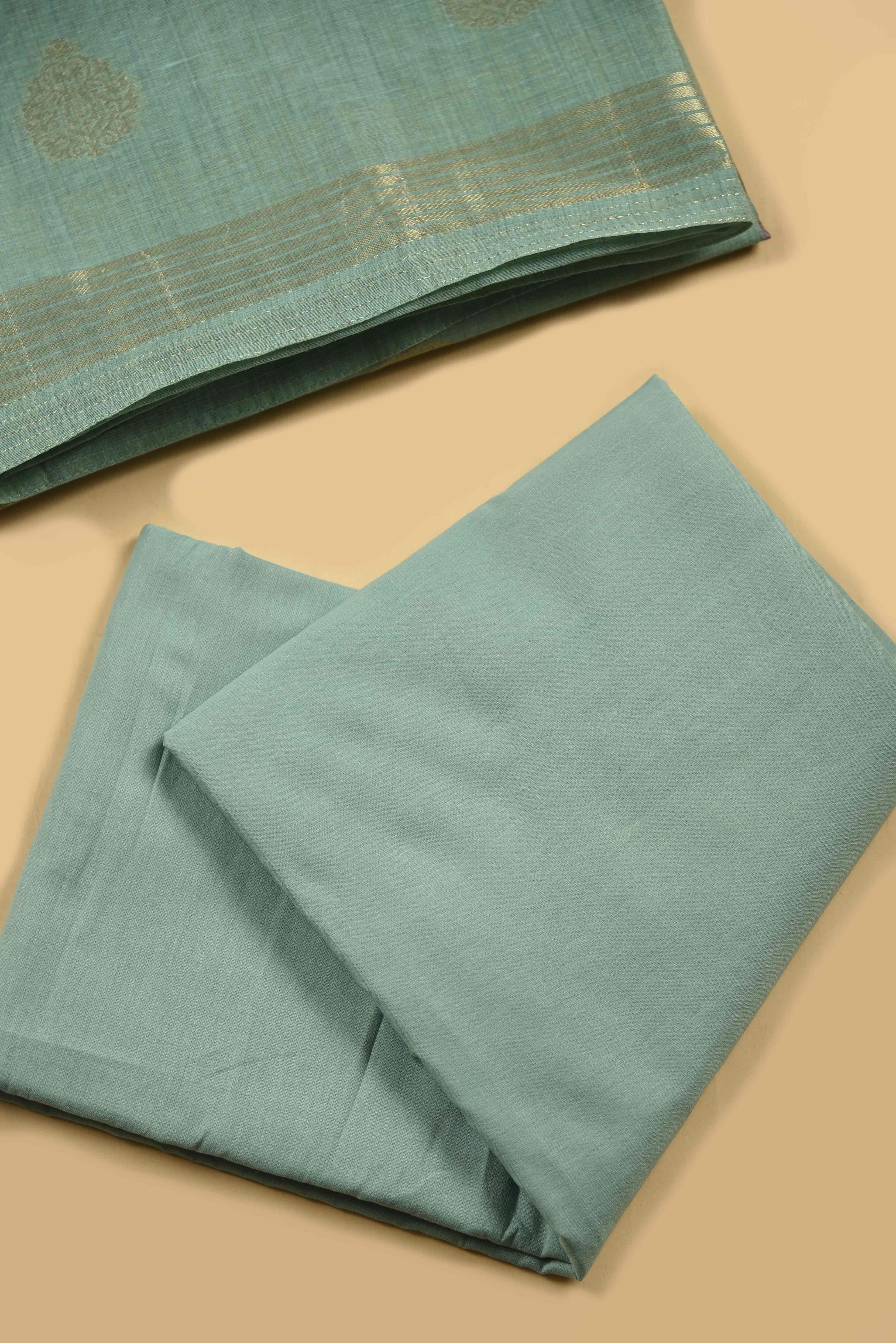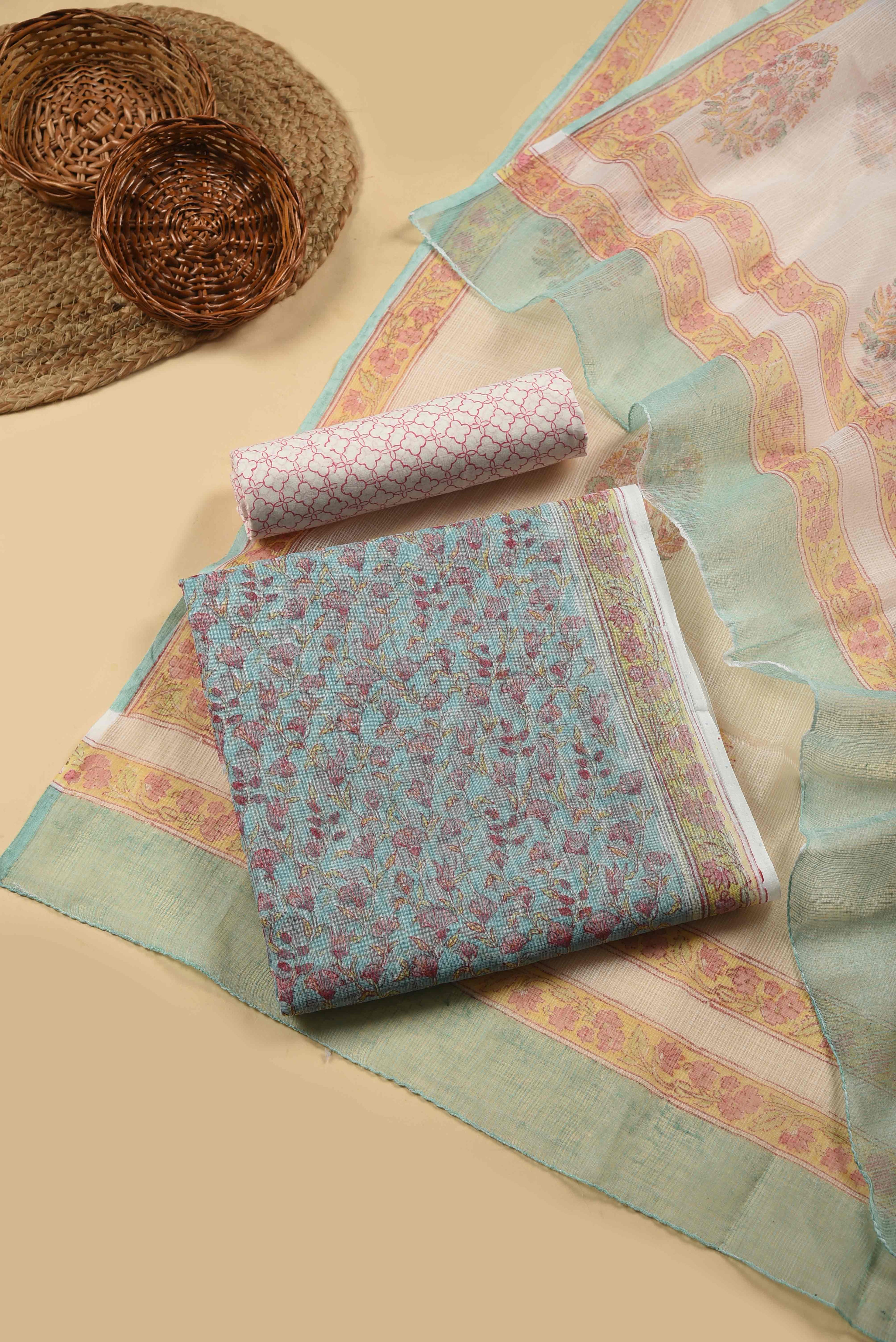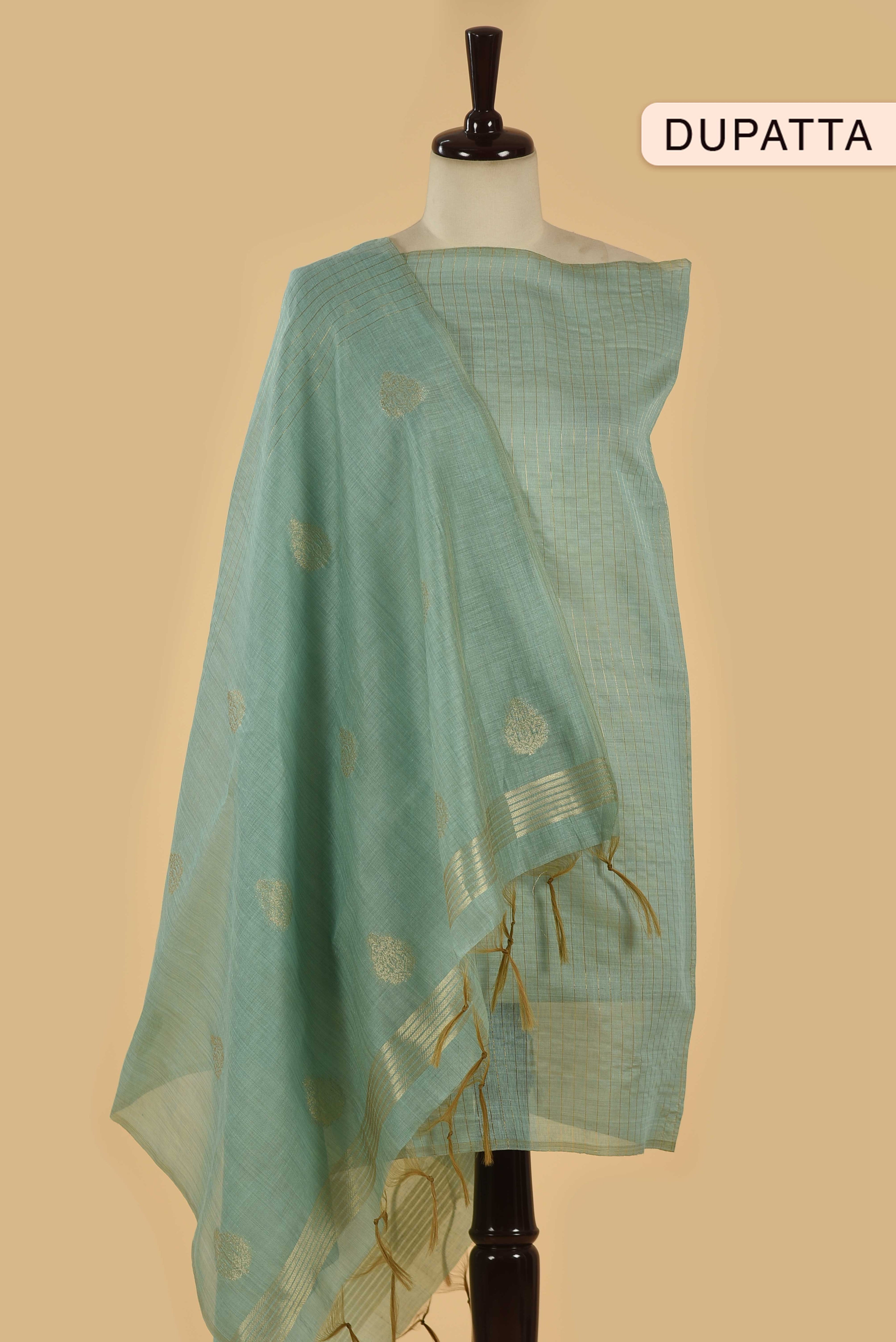 Black With Green Kota Hand Block Printed Unstitched Suit Fabric Set With Kota Hand Block Printed Dupatta