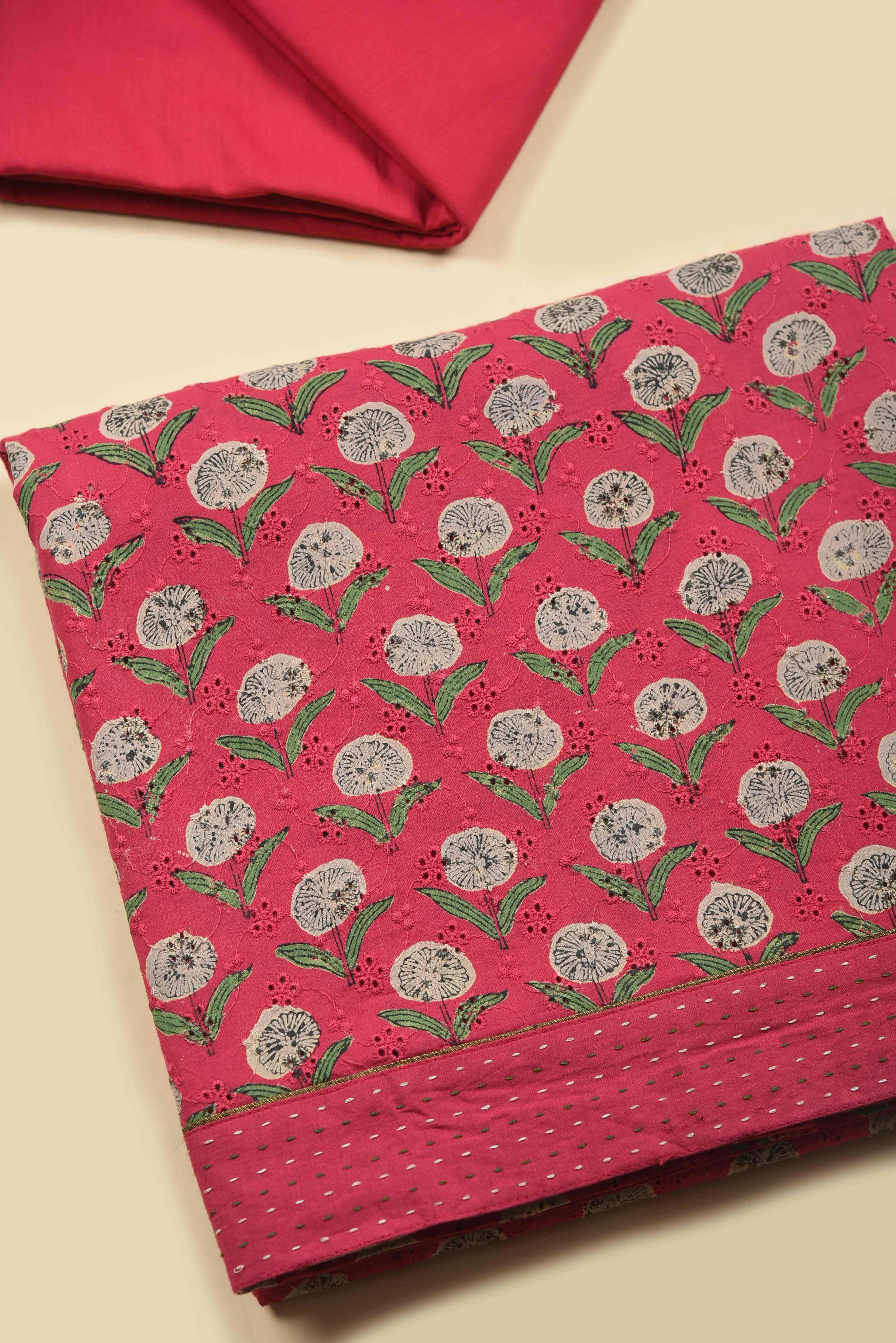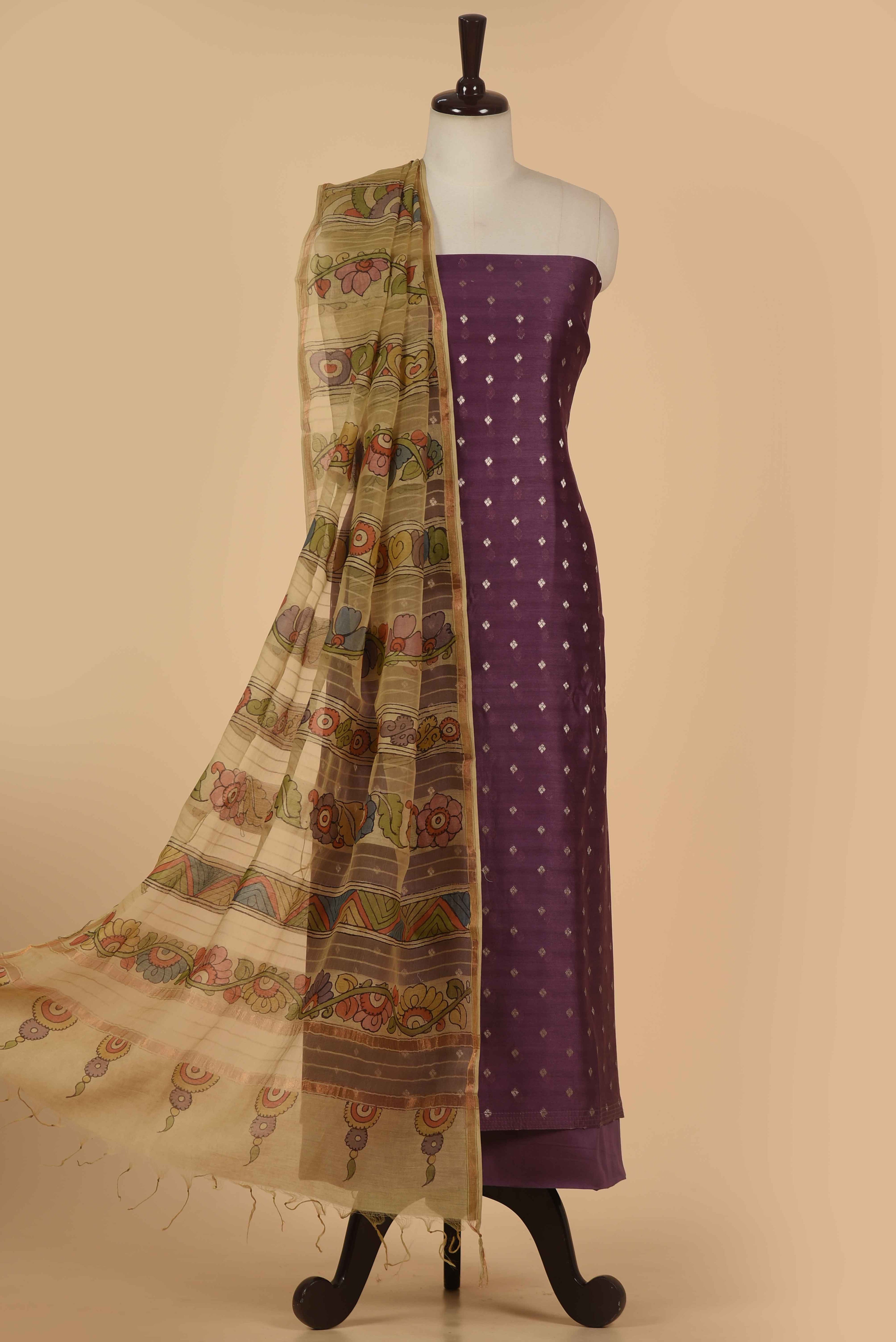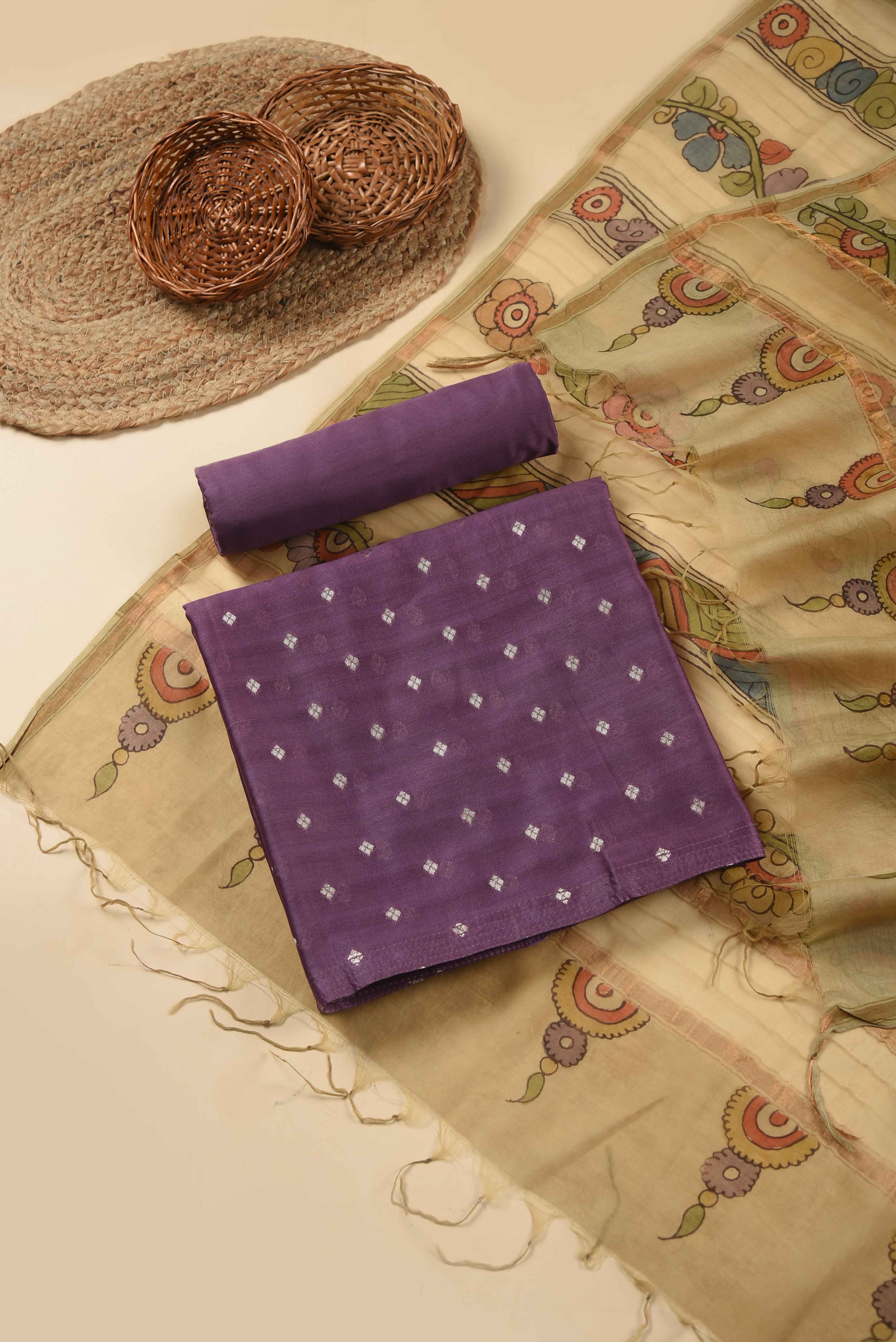 Light Mauve Mul Chanderi Embroidered Unstitched Suit Fabric Set With Mul Chanderi Embroidered Dupatta