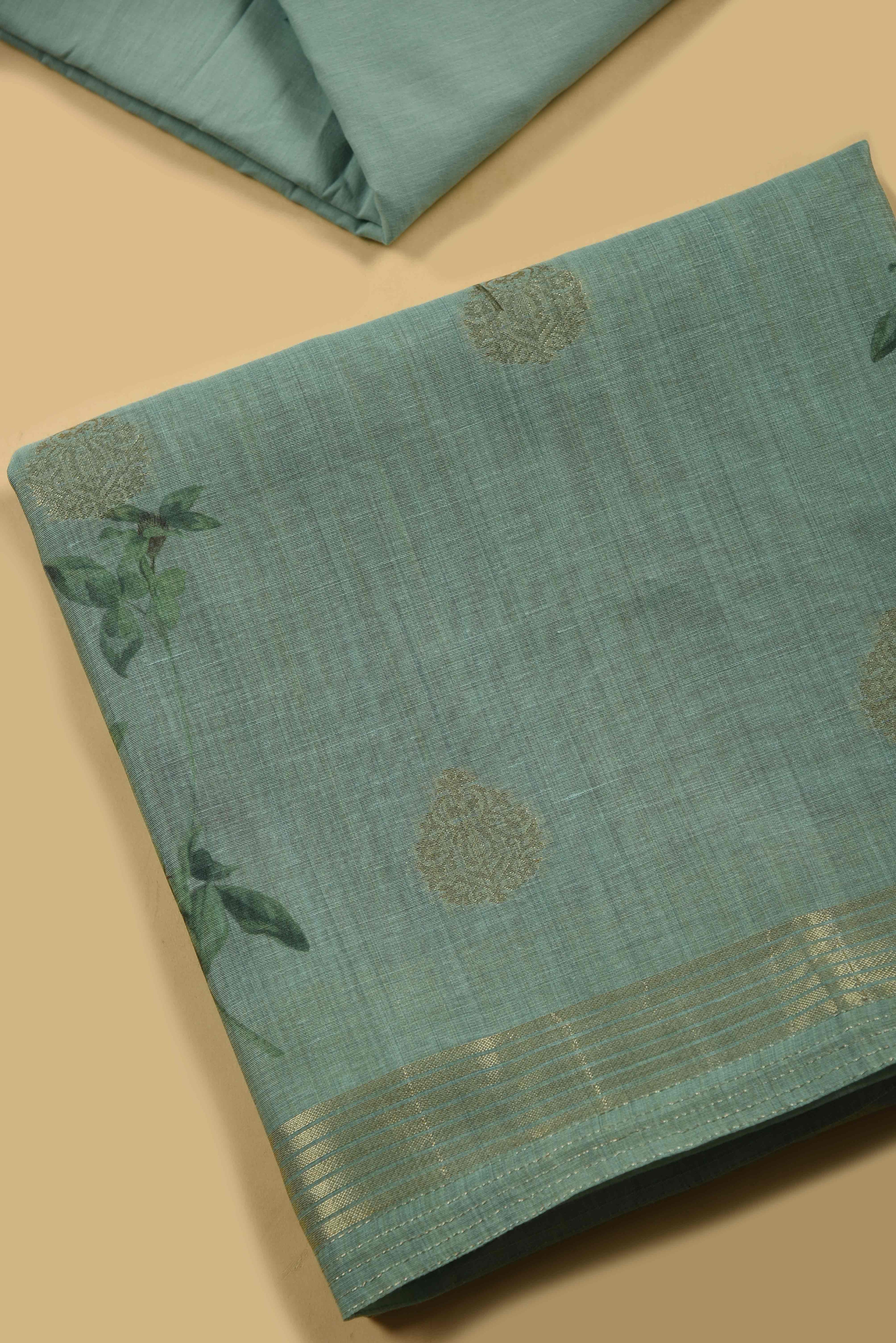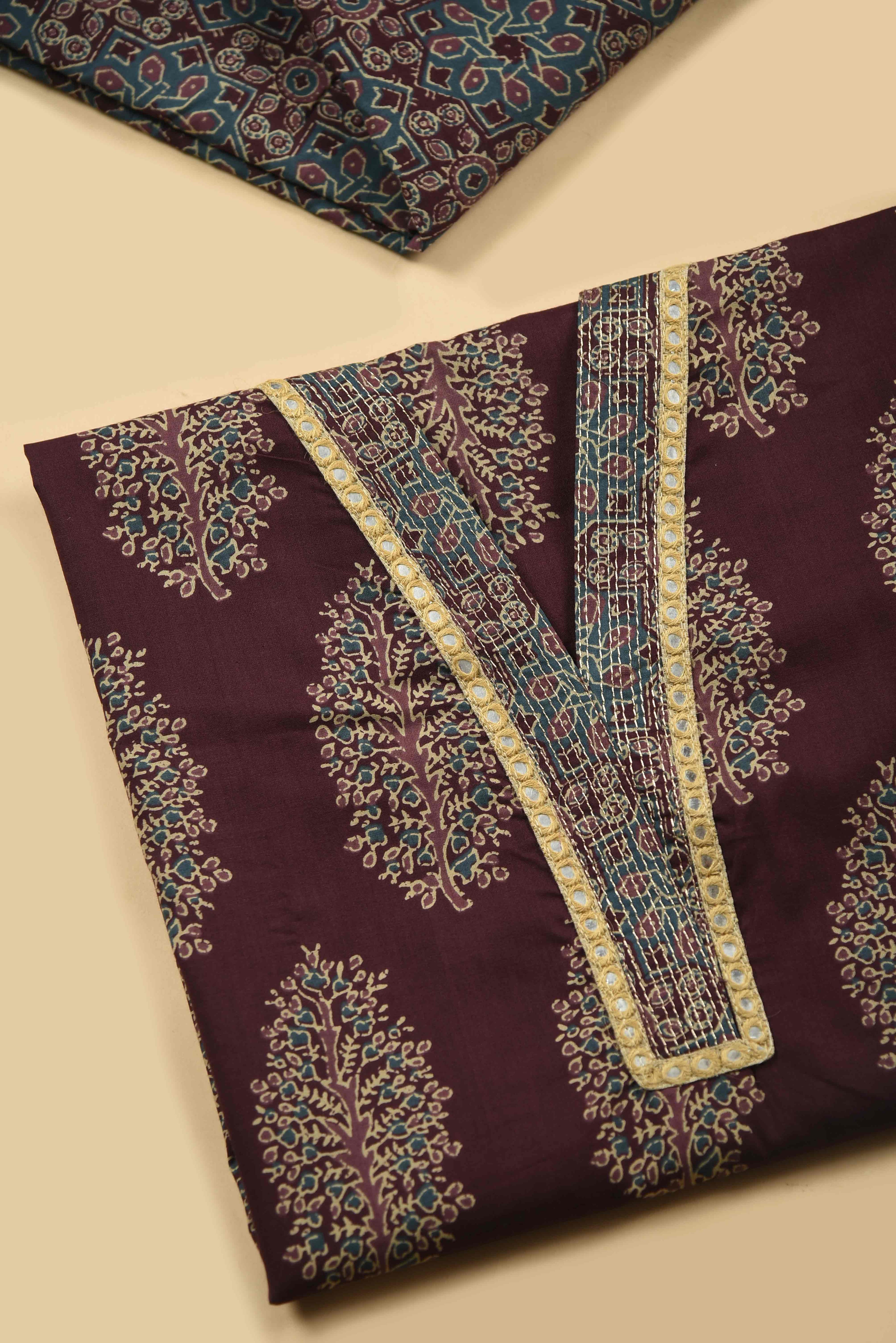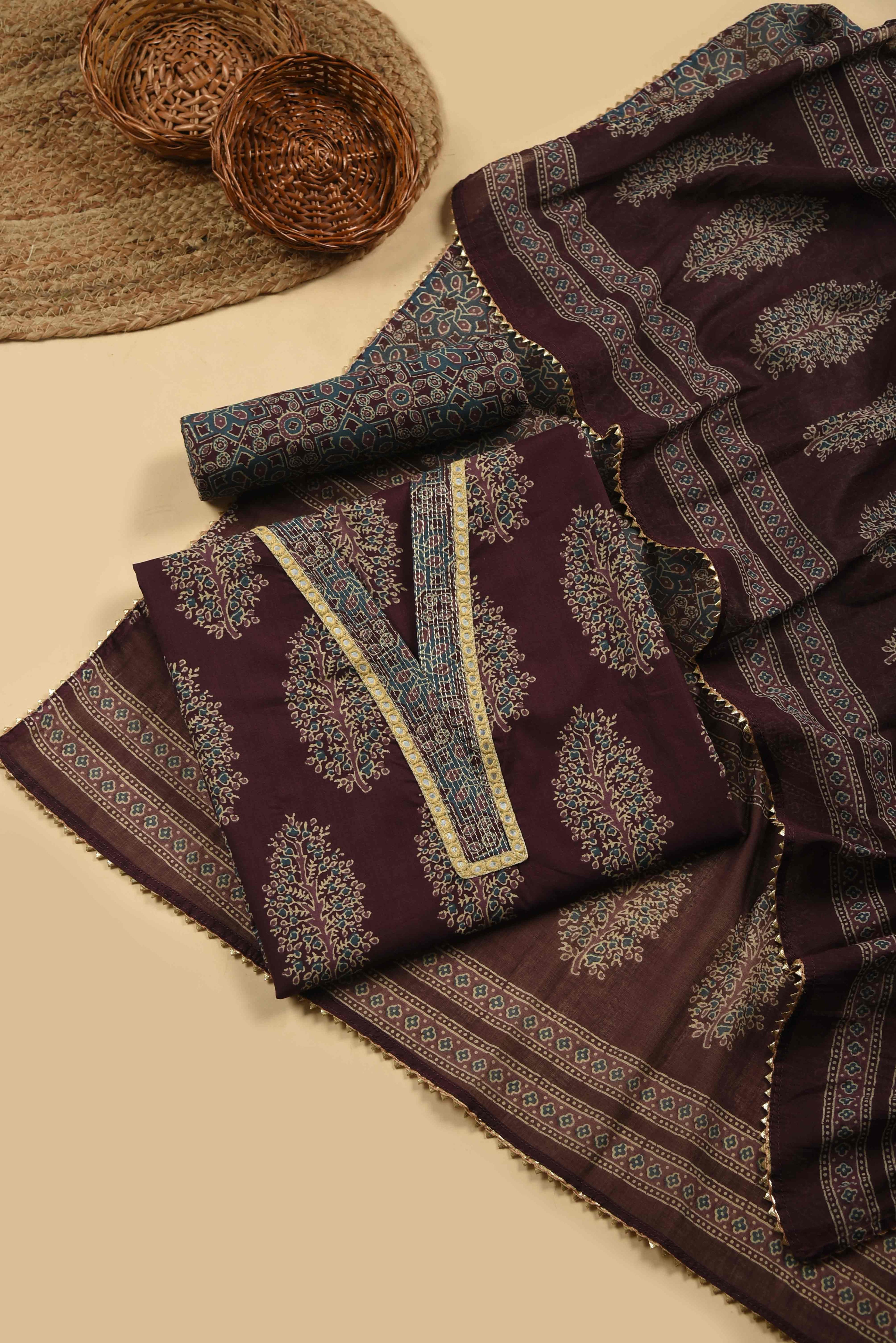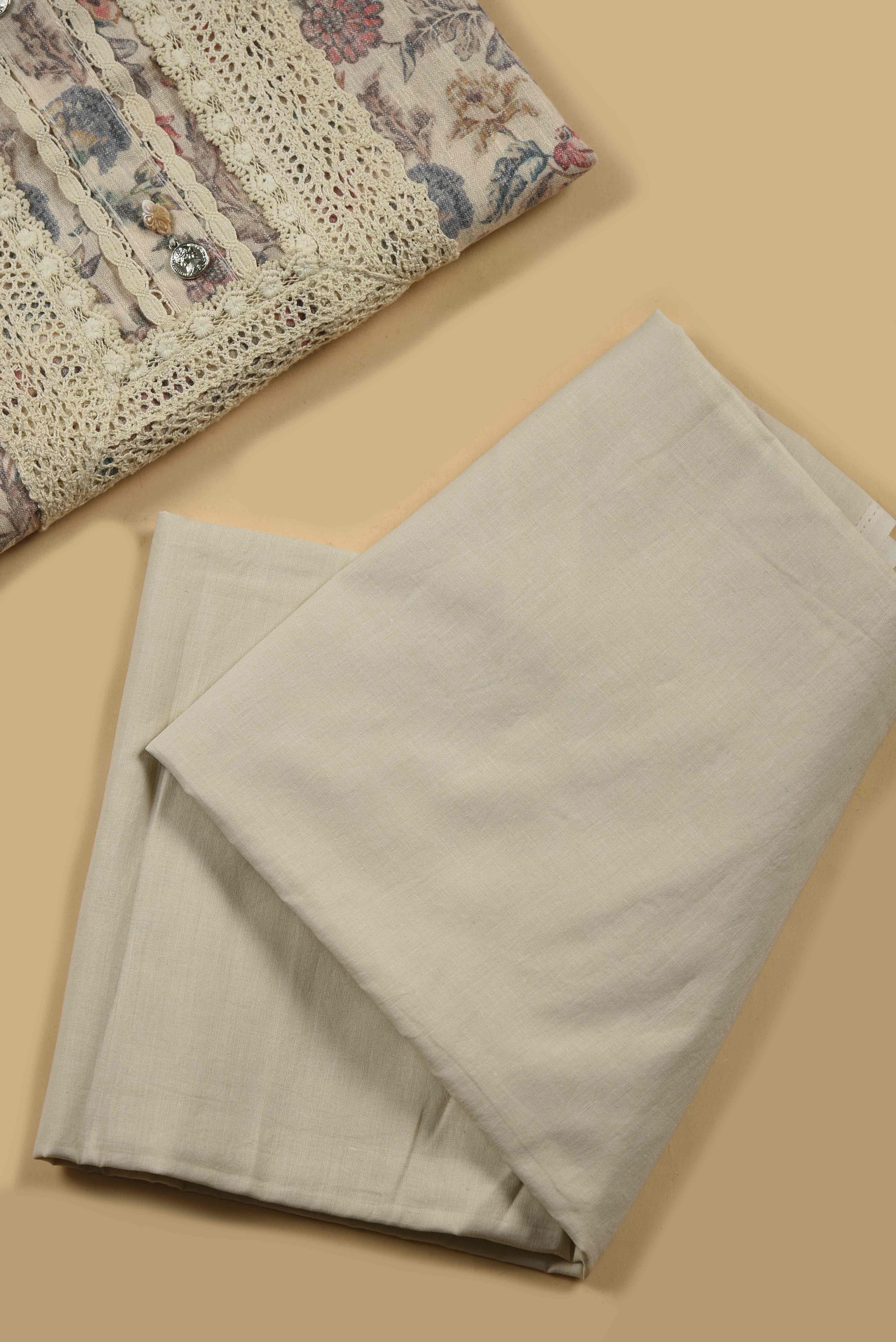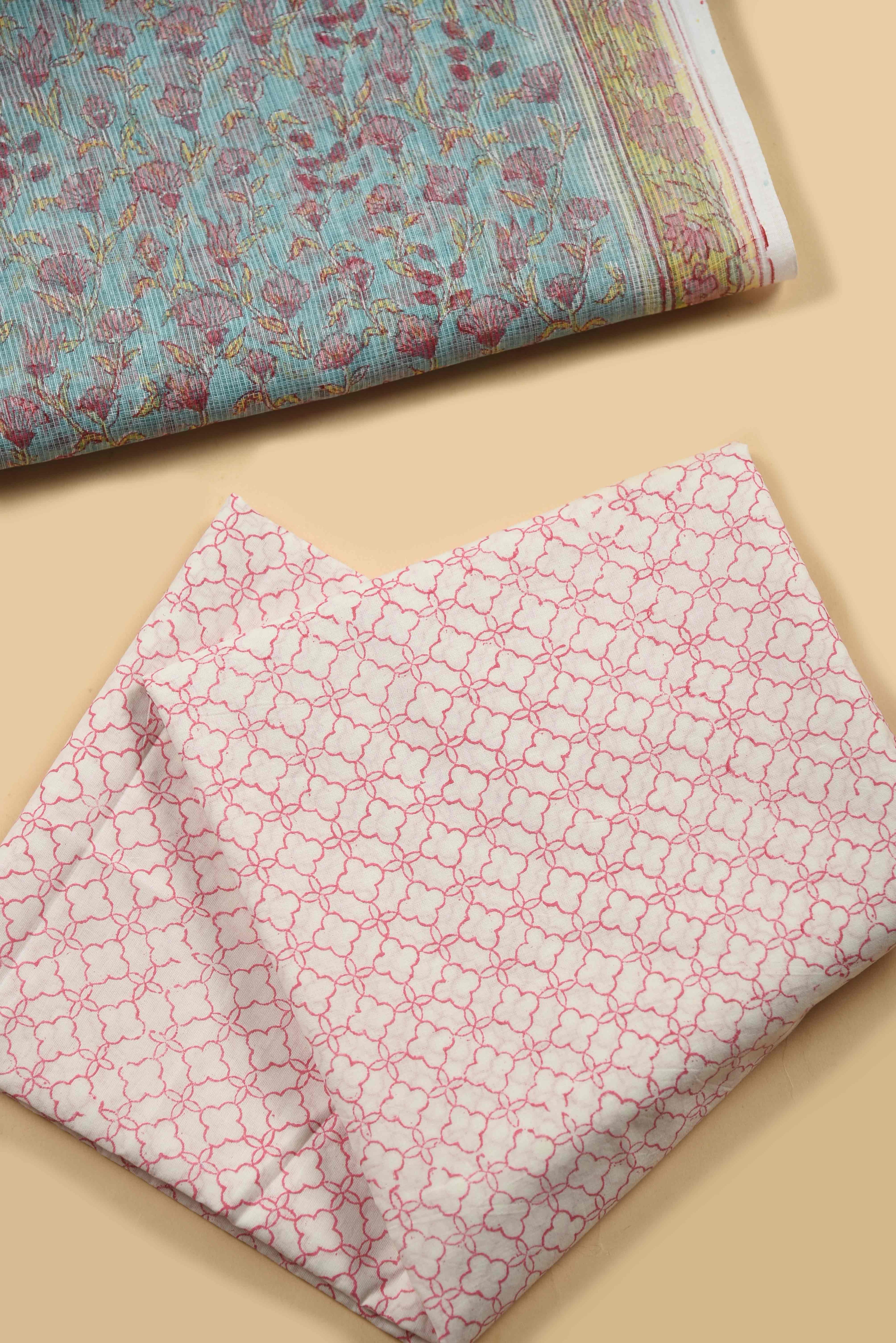 Blue Pure Cotton Printed With Lace Work Unstitched Suit Fabric Set With Cotton Printed Dupatta