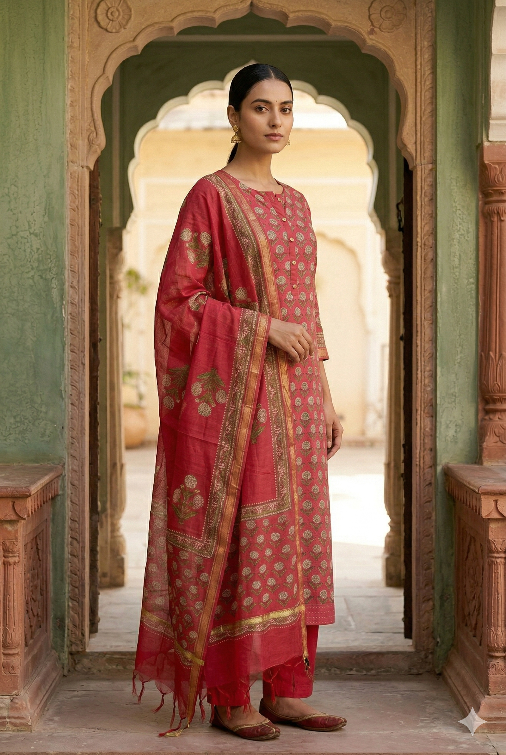 Discover the freedom to design your dream outfit with our premium unstitched suit set fabrics. From soft cottons to luxurious silks, each fabric set is carefully curated to let you create styles that are uniquely yours.