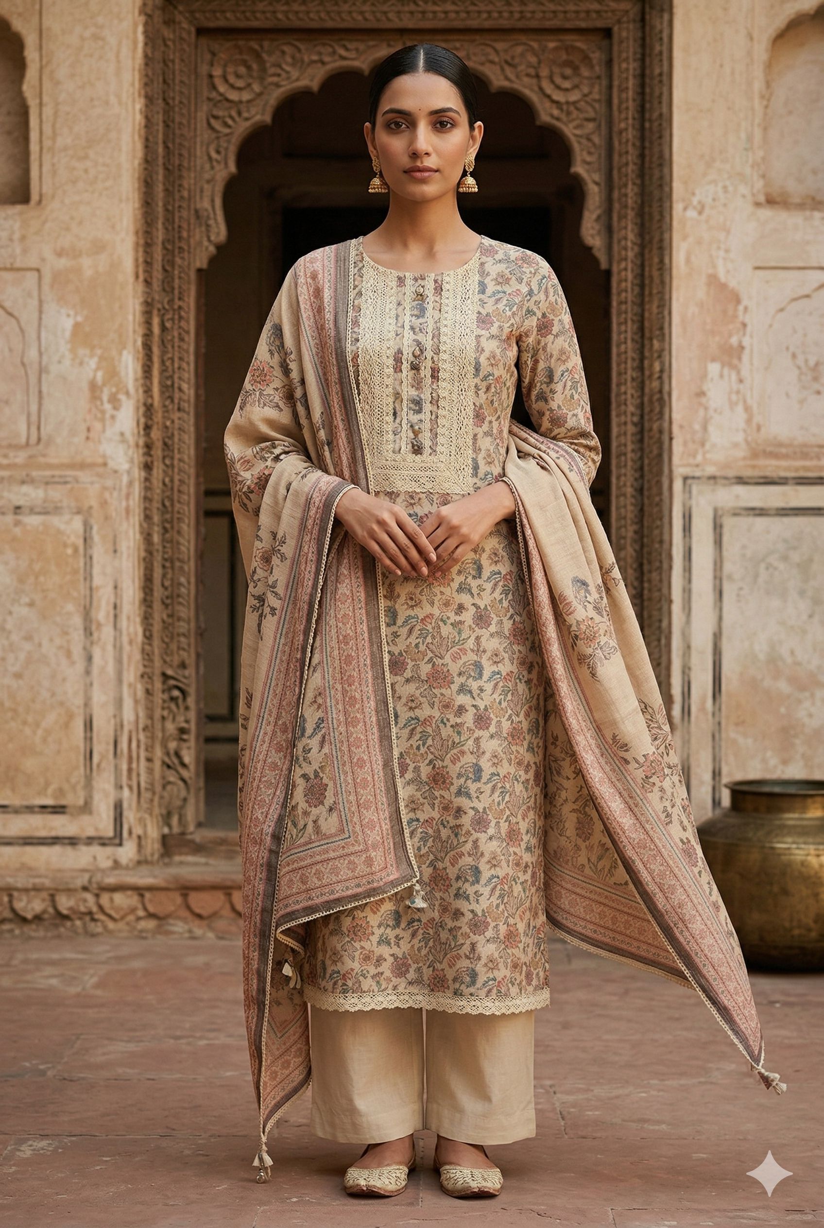 Whether you prefer classic embroidery, contemporary prints, or rich festive weaves, our unstitched suit materials give you endless possibilities. Perfect for tailoring into kurtas, salwar suits, churidars, or occasion wear, these fabrics are versatile, elegant, and crafted for comfort.