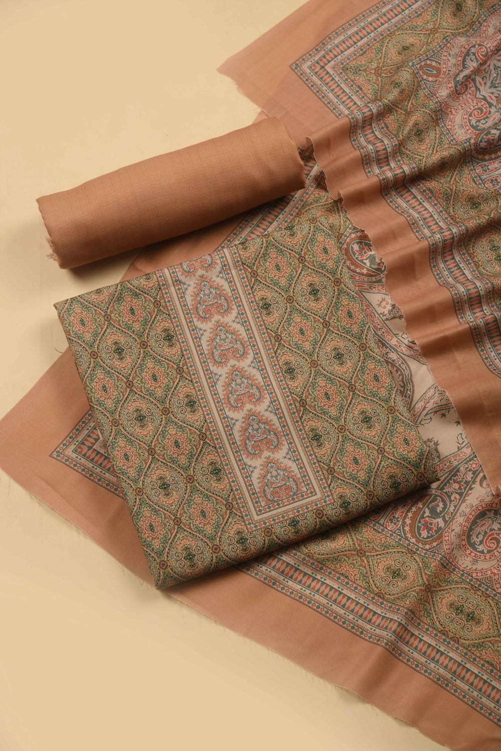 (1) Shirt Fabric in Wool Spun, (1) Bottom Fabric in Wool, (1) Dupatta Fabric In Spun |