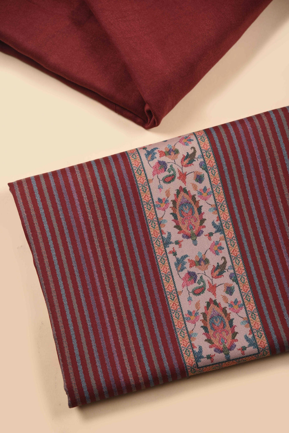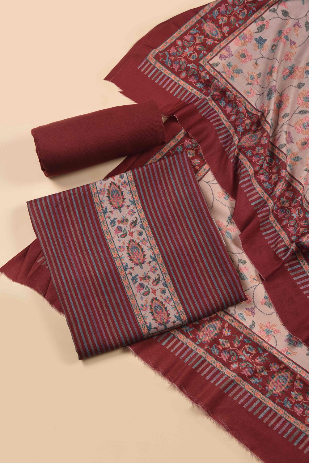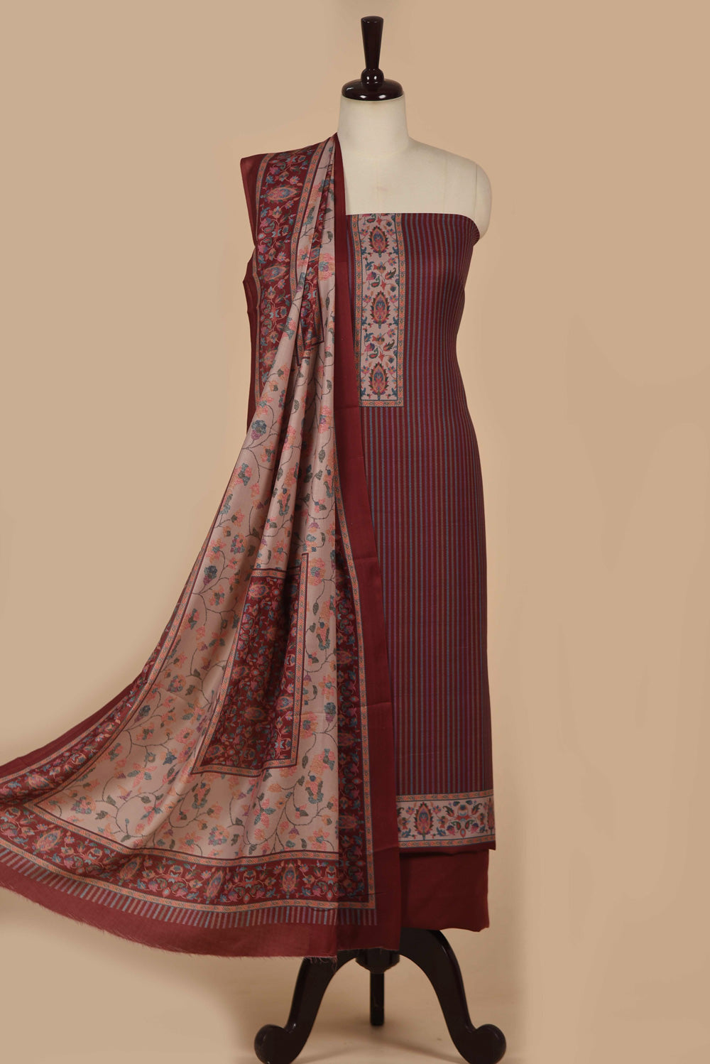 Maroon Winter Wear Wool Spun Printed Unstitched Suit Fabric Set With Wool Blend Printed Dupatta