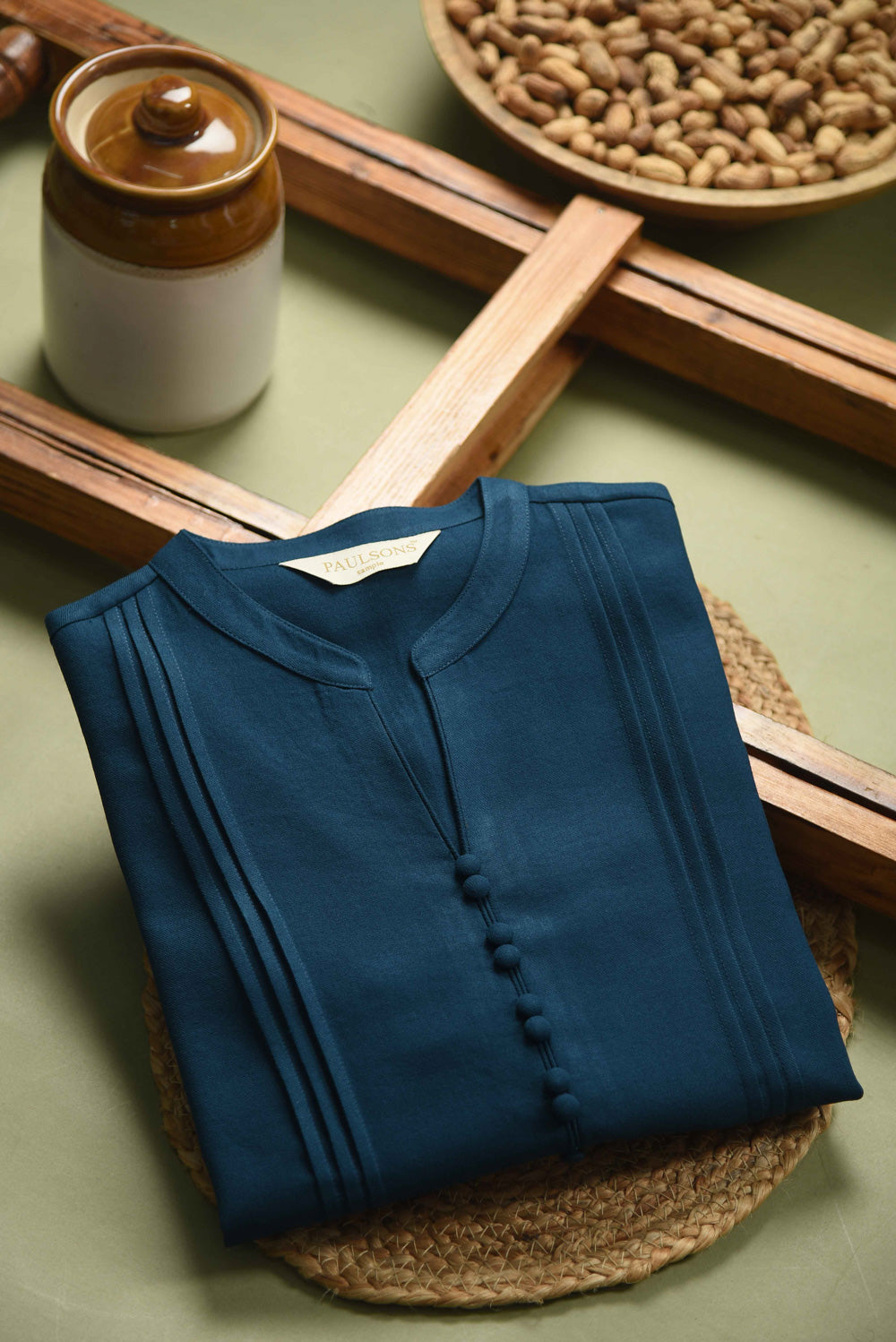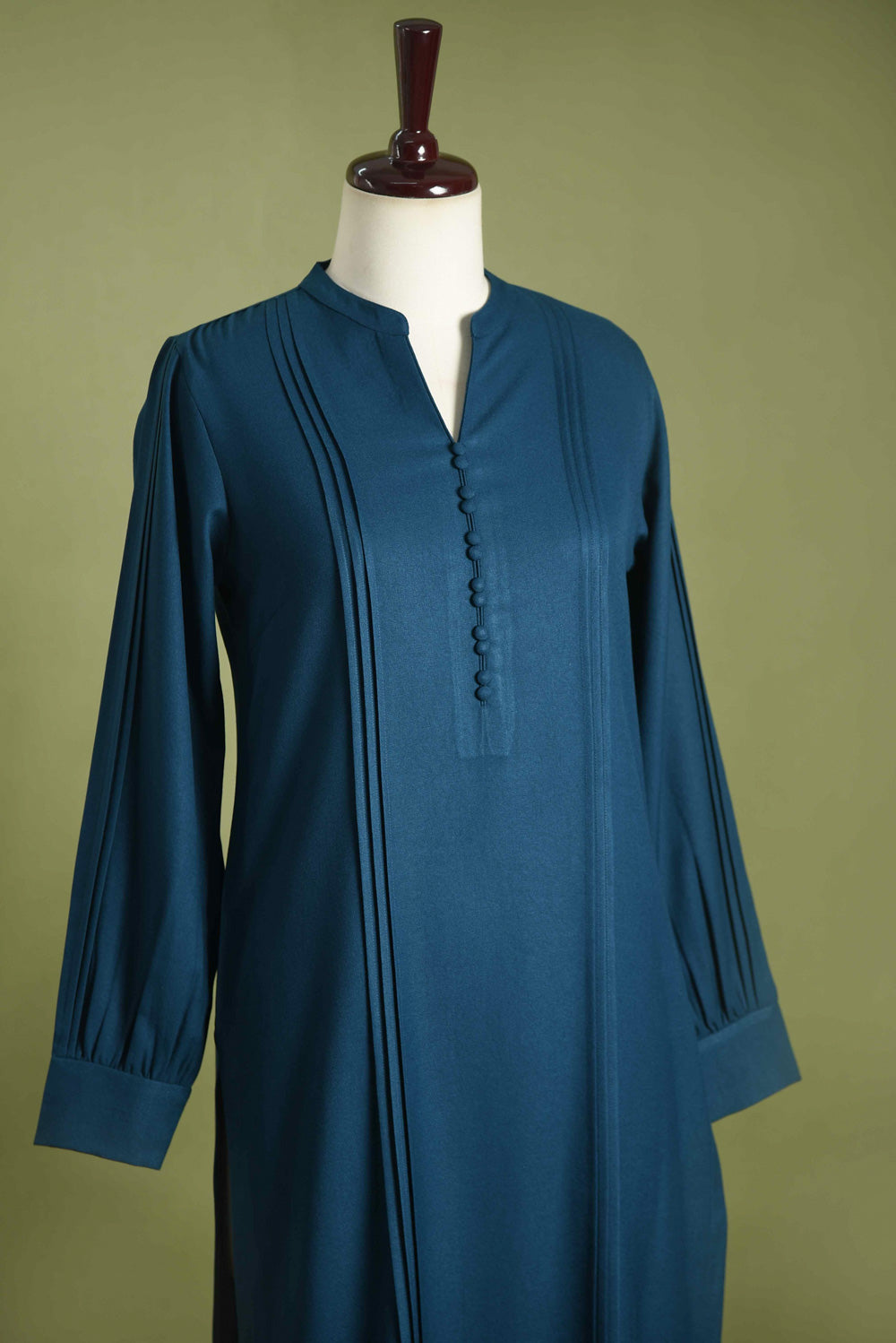 Dusty Green Winter Wear Wool Spun Blend Pintuck Kurta Set-Regular Fit