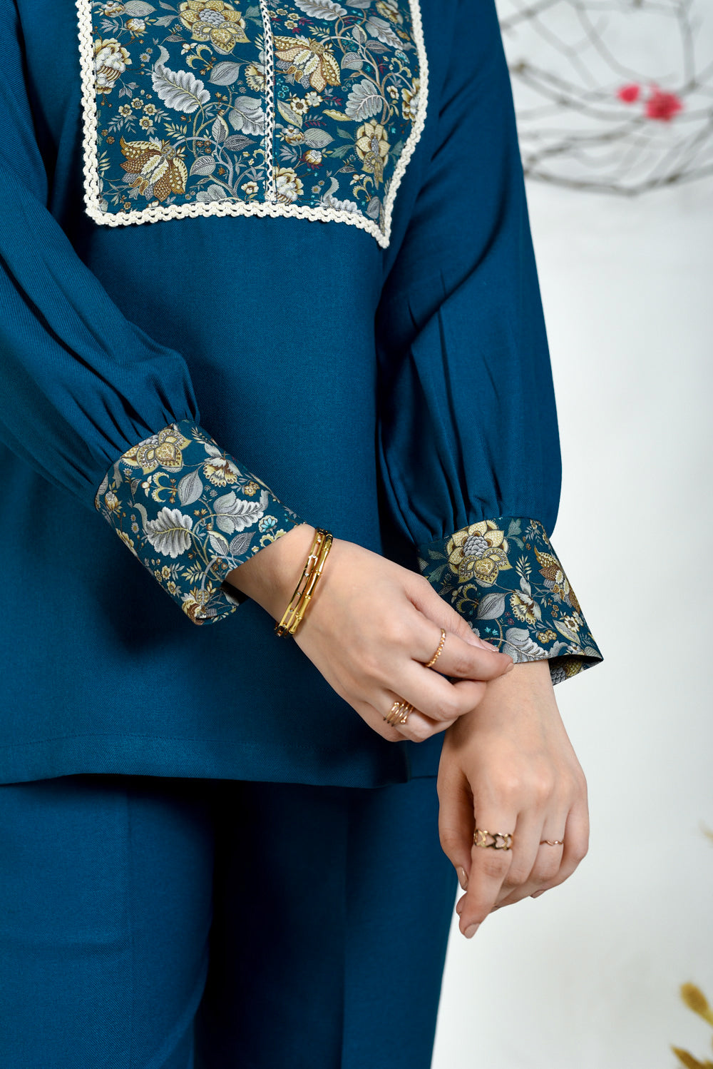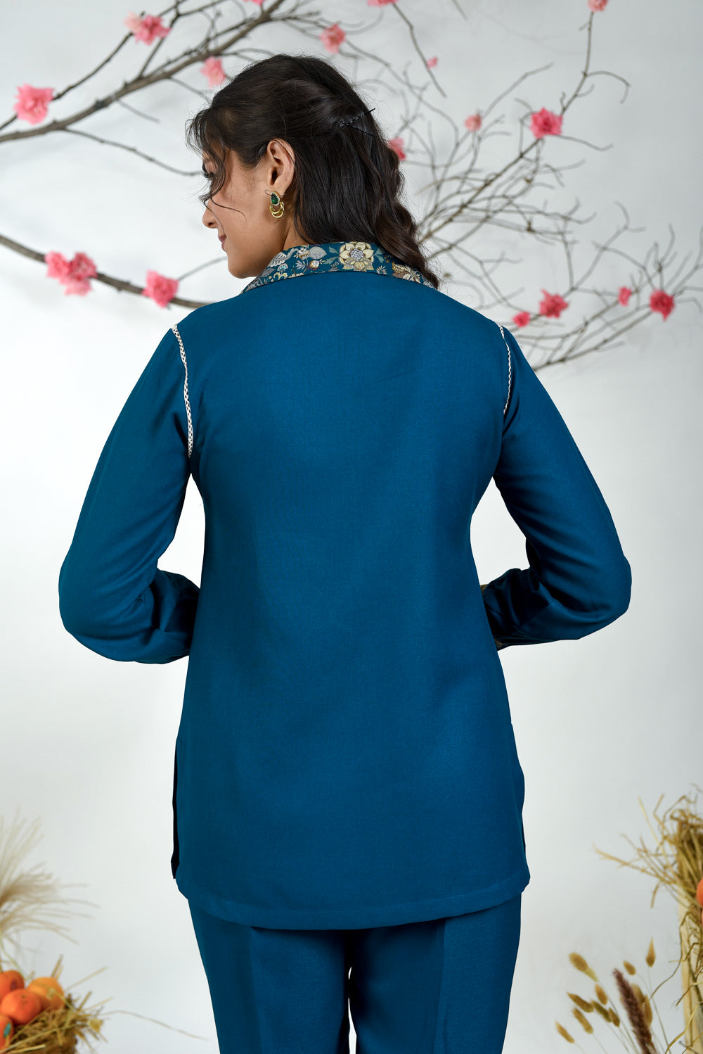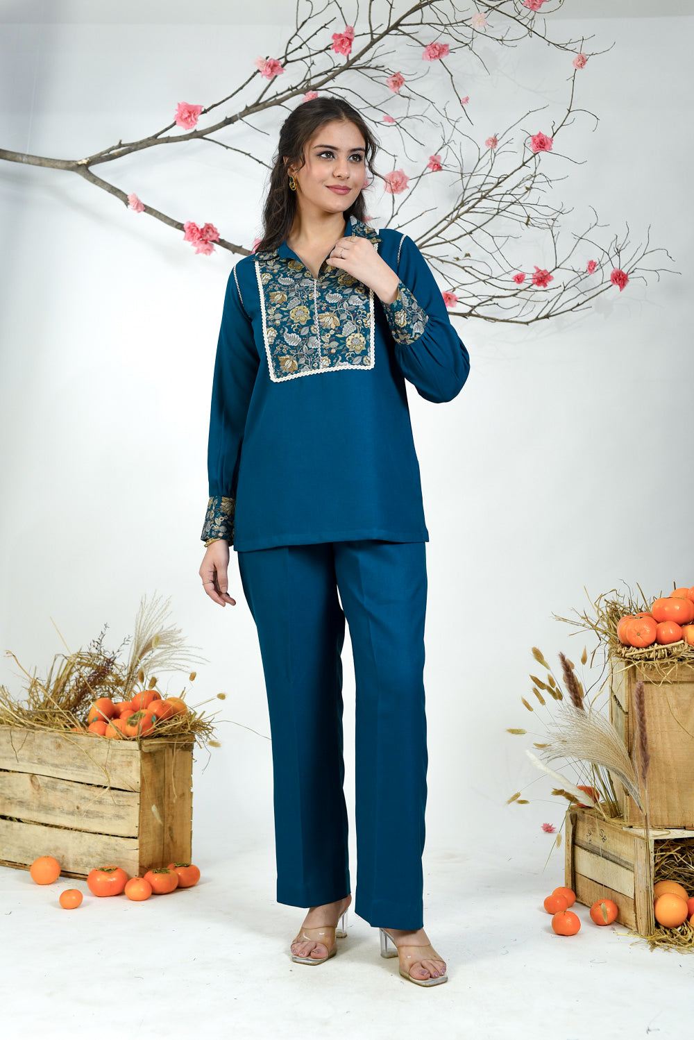 Black Winter Wear Wool Spun Blend Tribal Embroidered Co-ord Set-Regular Fit