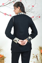 Black With Printed Yoke Winter Wear Wool Spun Blend Short Kurti-Regular Fit