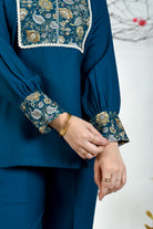 This Blue Winter Wear Wool Spun Blend Co-ord Set combines refined craftsmanship with contemporary elegance.