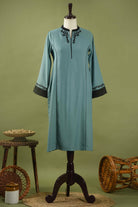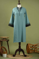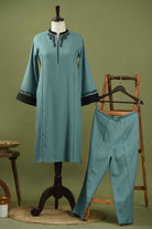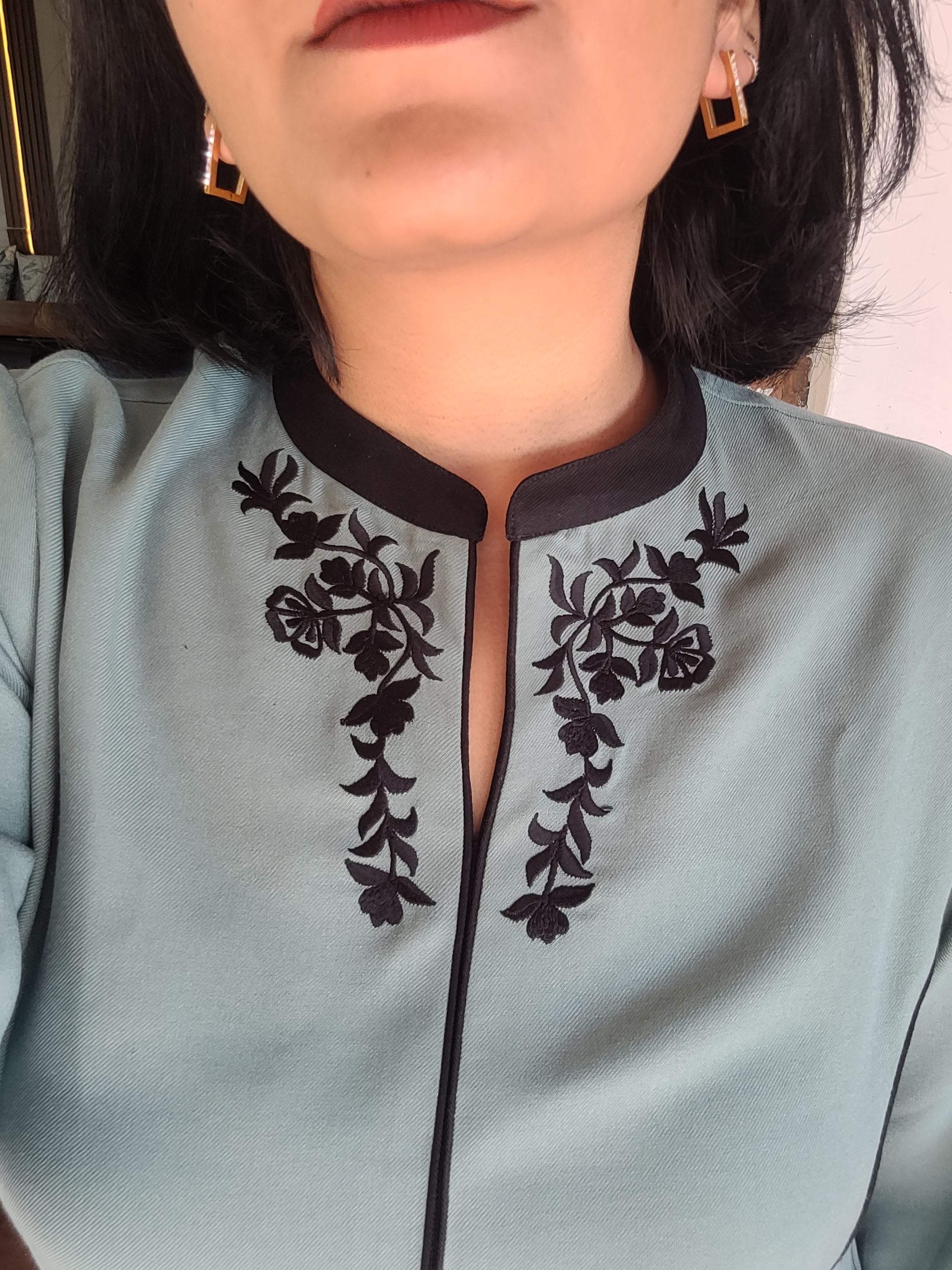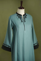 Light Blue And Black Winter Wear Wool Spun Blend Floral Embroidered Kurta Set-Regular Fit
