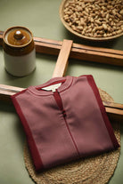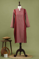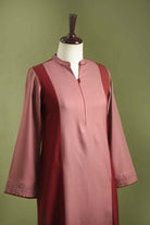 Maroon And Dusty Pink Panel Winter Wear Wool Spun Blend Kurta Set-Regular Fit