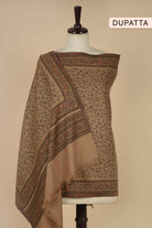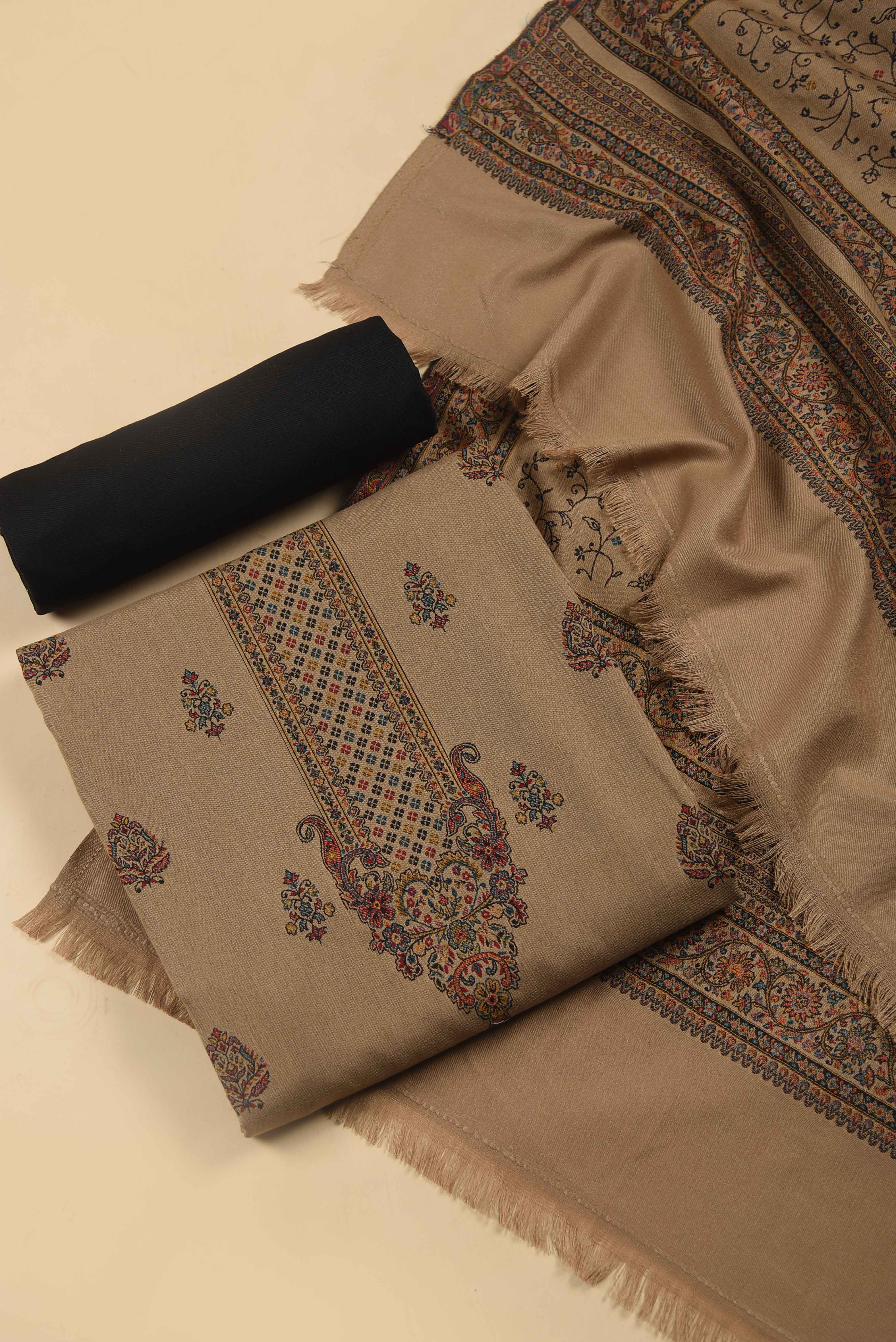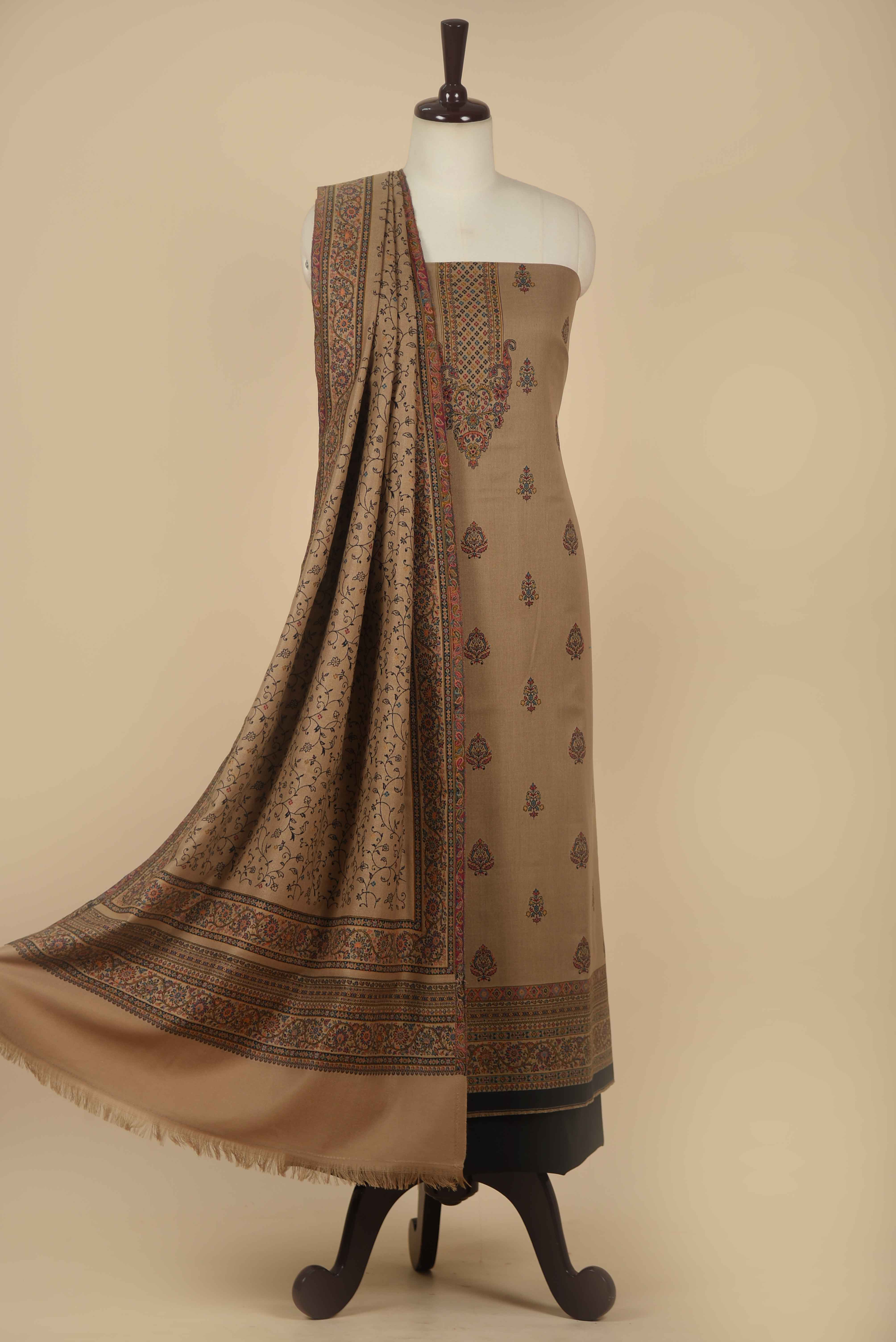 Brown With Black Winter Wear Jamdani Wool Spun Blend Unstitched Suit Fabric Set With Wool Spun Blend Stole