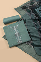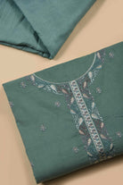 Green Winter Wear Coudoury Embroidered Unstitched Suit Fabric Set With Muslin Printed Dupatta